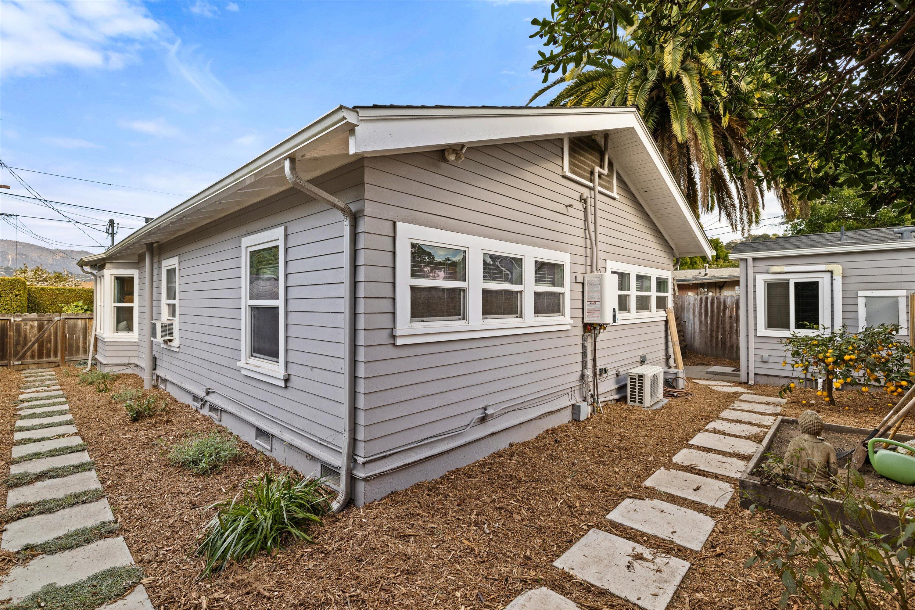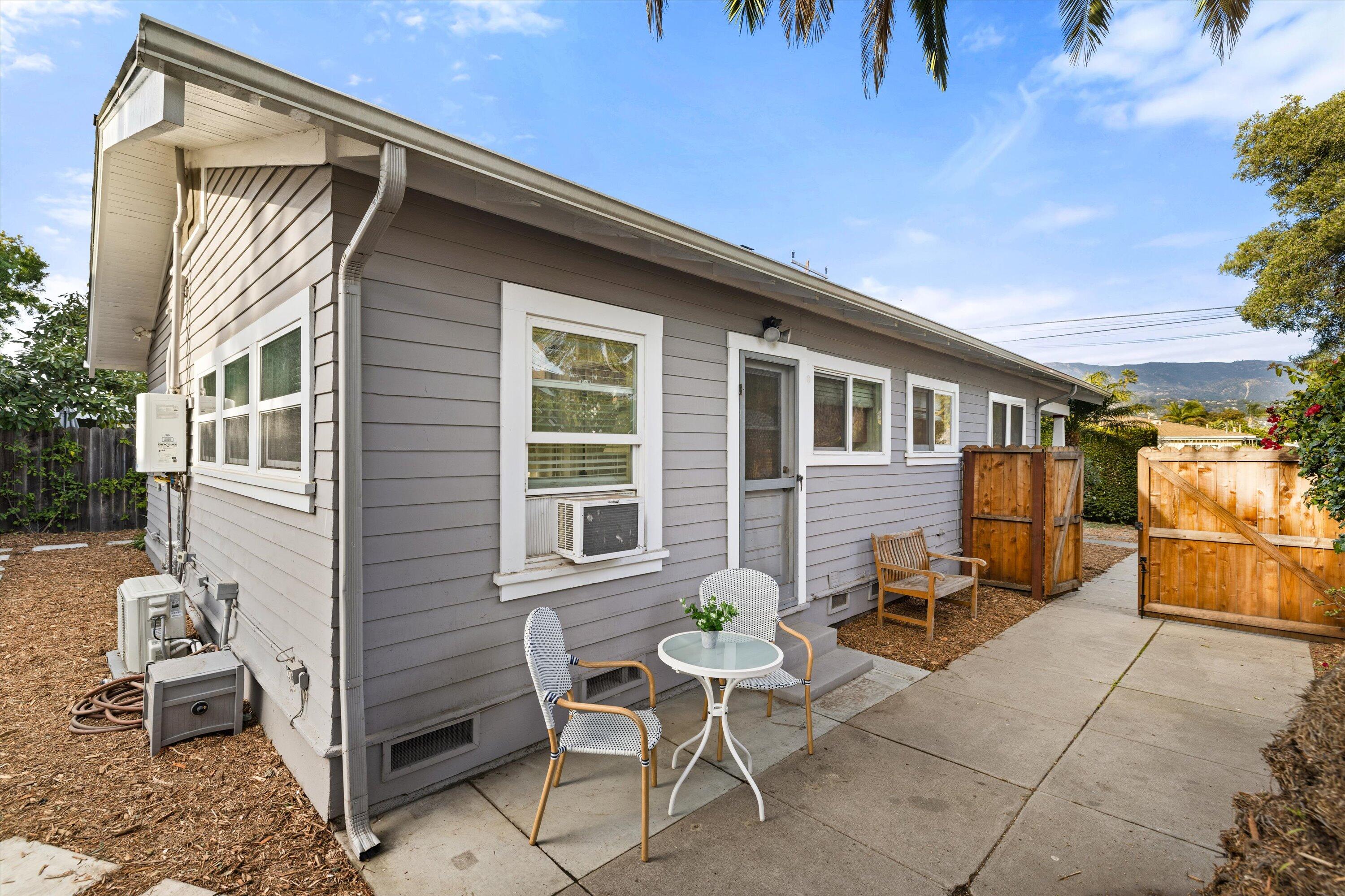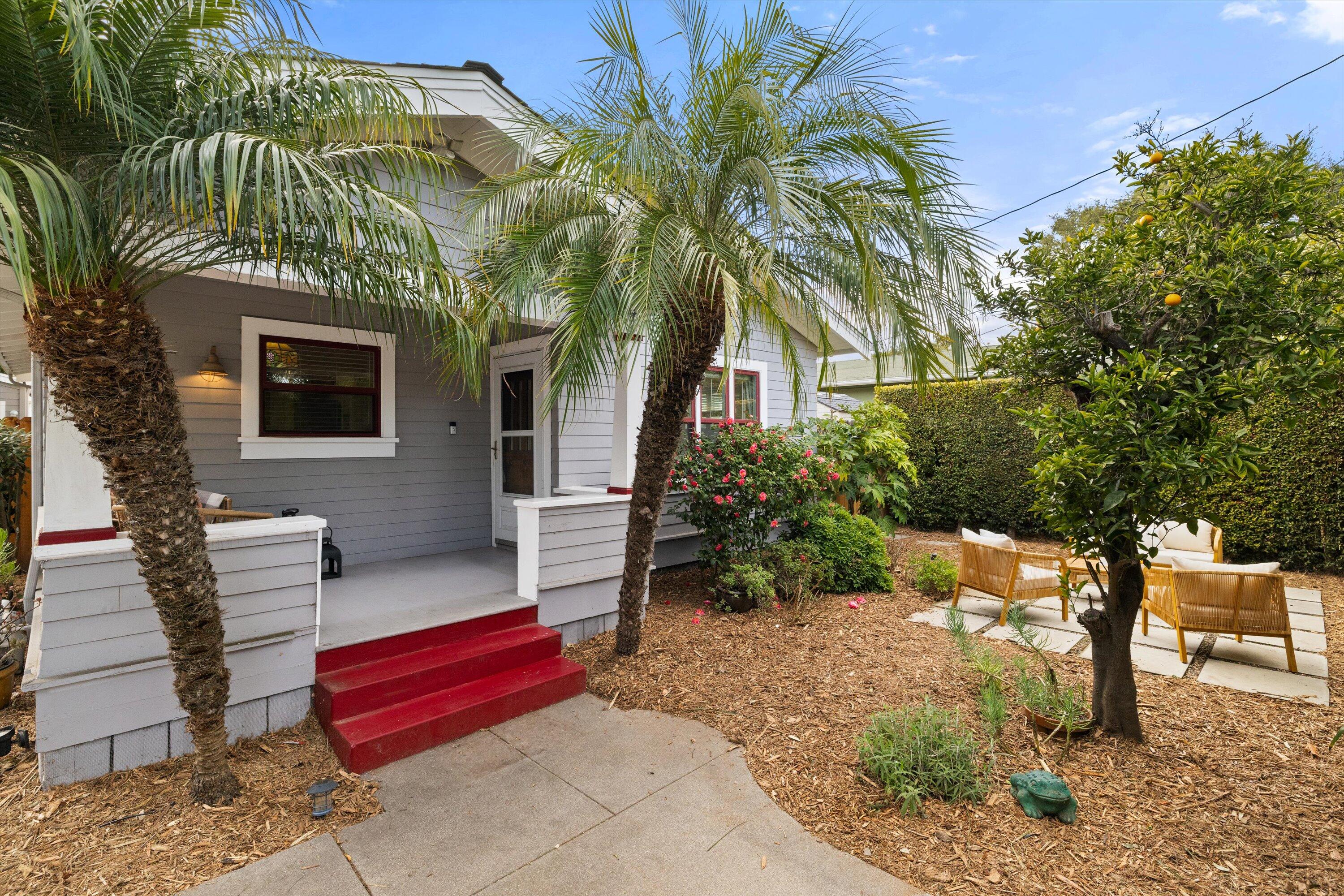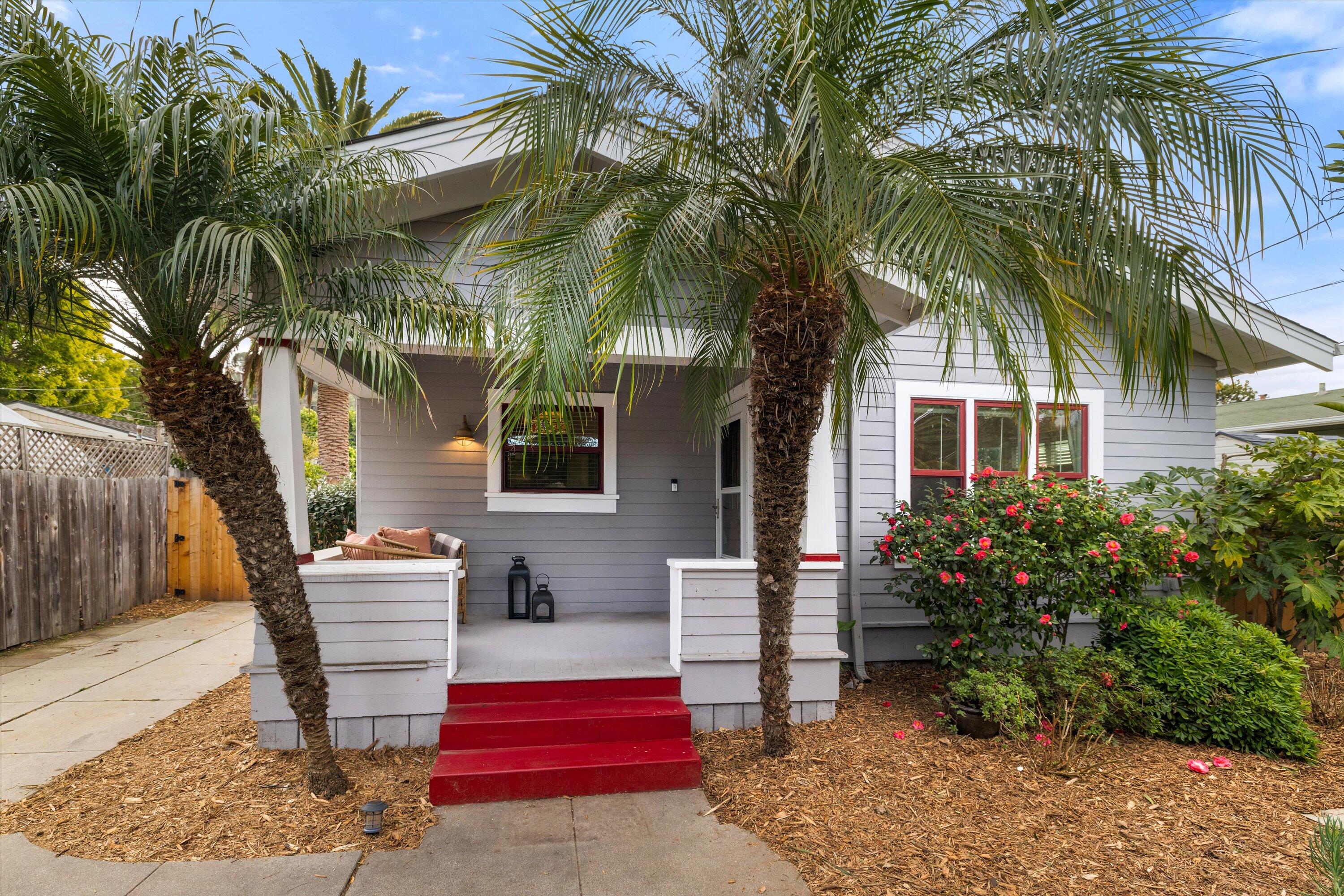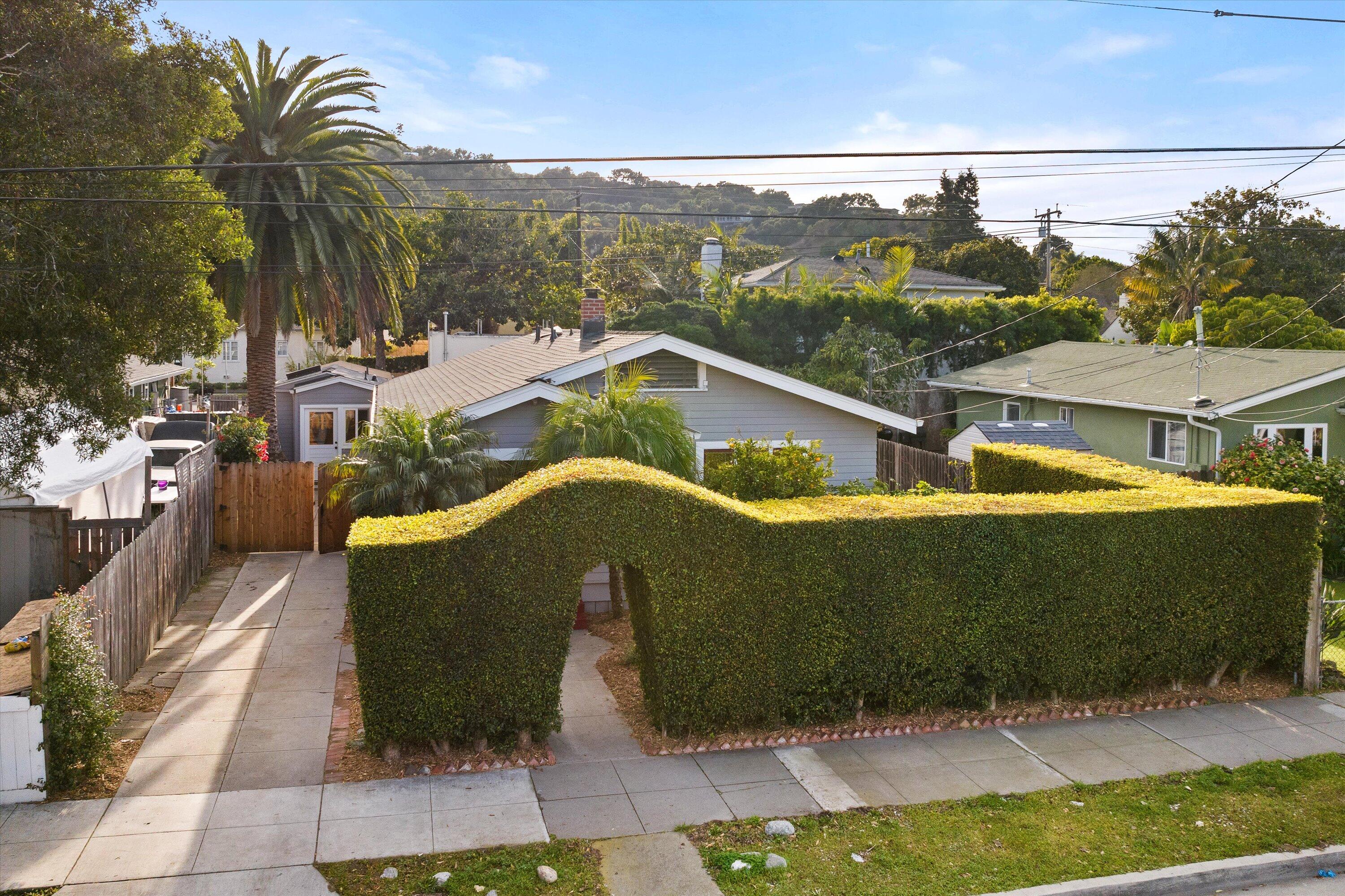 Step into this charming 1930's Craftsman-style bungalow with permitted studio ADU circa 2023, located on a quiet street on Santa Barbara's Westside. Offering the best of vintage appeal with valuable updates, this home is situated behind a beautiful privacy hedge and greets you with a classic front porch and ultra private front yard space. Features include three bedrooms; one of which could live as an office/den space, one and a half bathrooms, a formal dining room with original built-in buffet, inviting living room with lots of windows and a newer gas fireplace. Rich wood floors, a newer roof, tankless water heater, newer electric panel, new paint and citrus trees add to the highlights of the home. The detached, permitted studio ADU built in 2023 offers many options for use such as family or guest space, a private work space or as an income producing rental. Located at the end of the long driveway with ample parking, extra outdoor space and next to a gorgeous, giant palm tree, the studio ADU includes a bathroom with shower, generous kitchen area, a built-in murphy bed, desk space and all the trimmings to move right in! Located in the central part of Santa Barbara's popular Westside with recent pedestrian and bicycle improvements, 1407 Gillespie has amazing access to the heart of Santa Barbara - just minutes to Downtown SB, The Mesa, beaches, parks, shopping, dining and more.