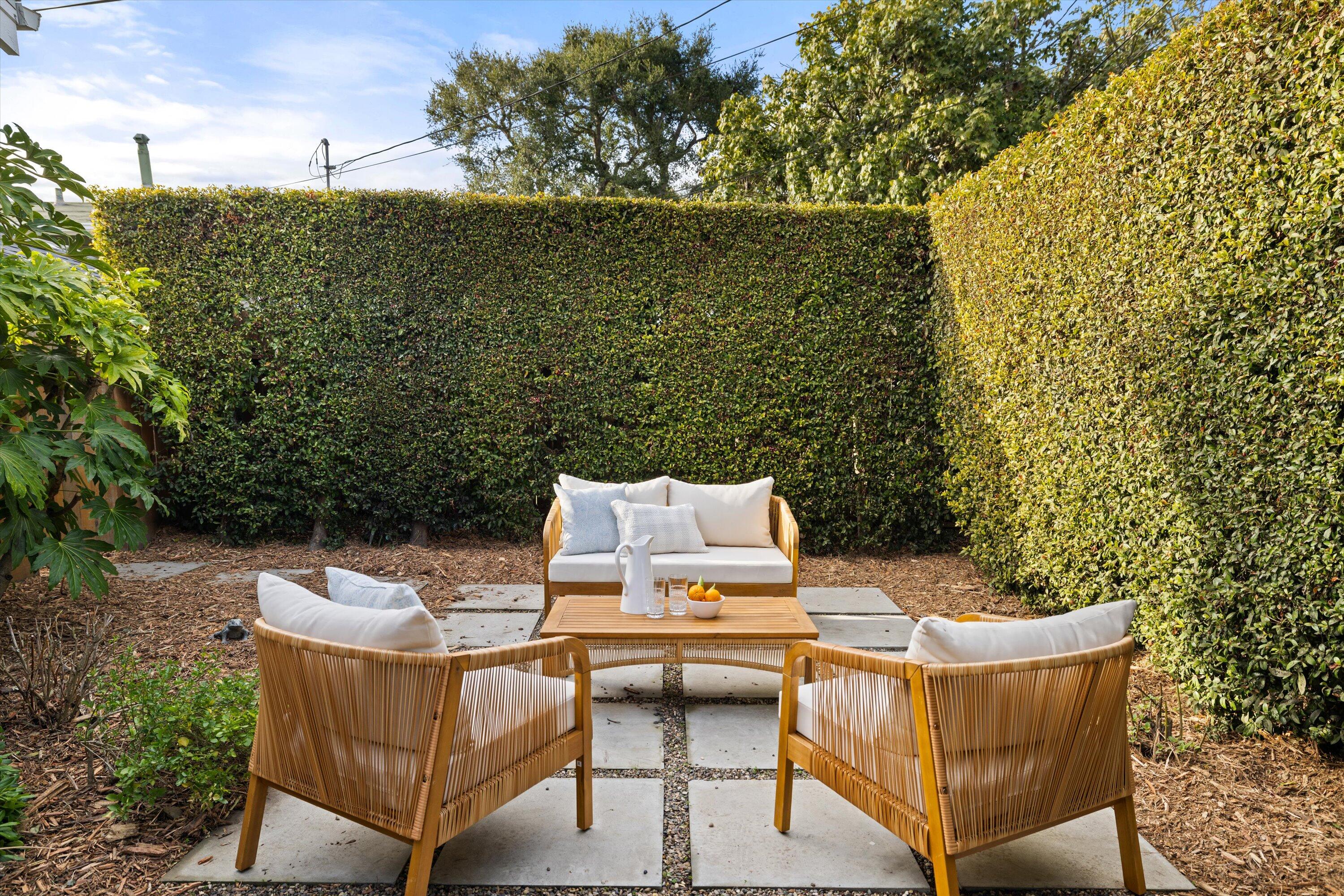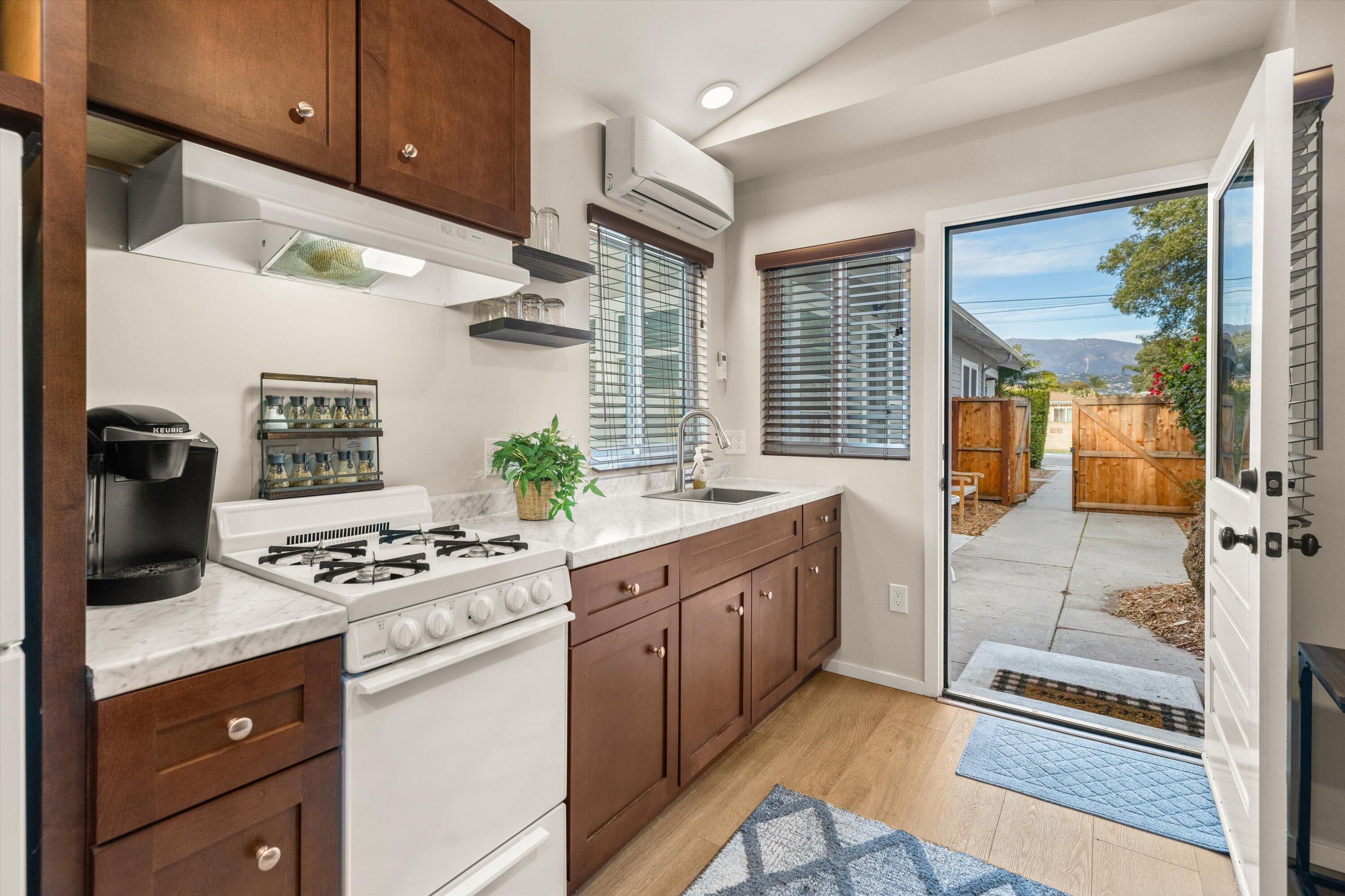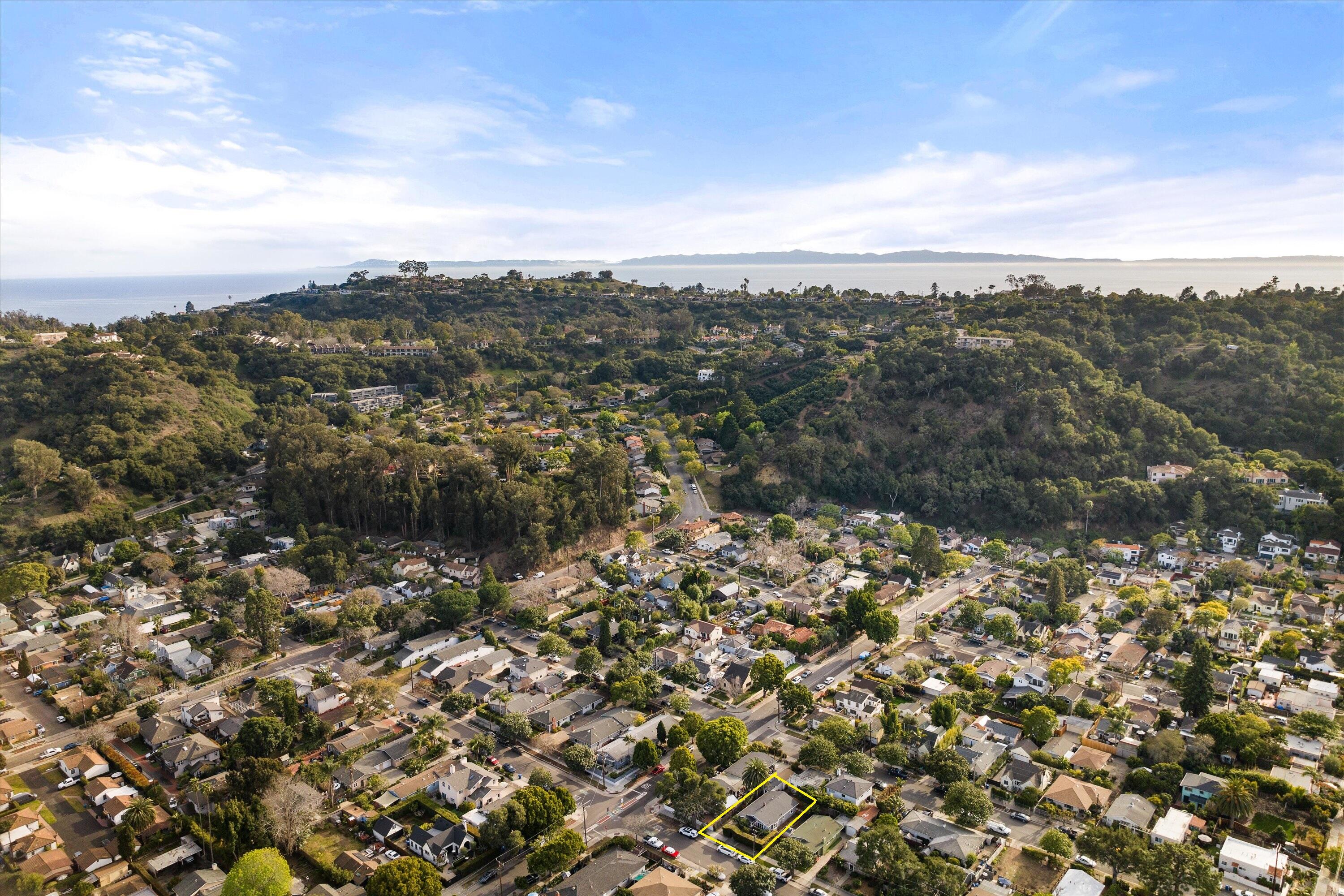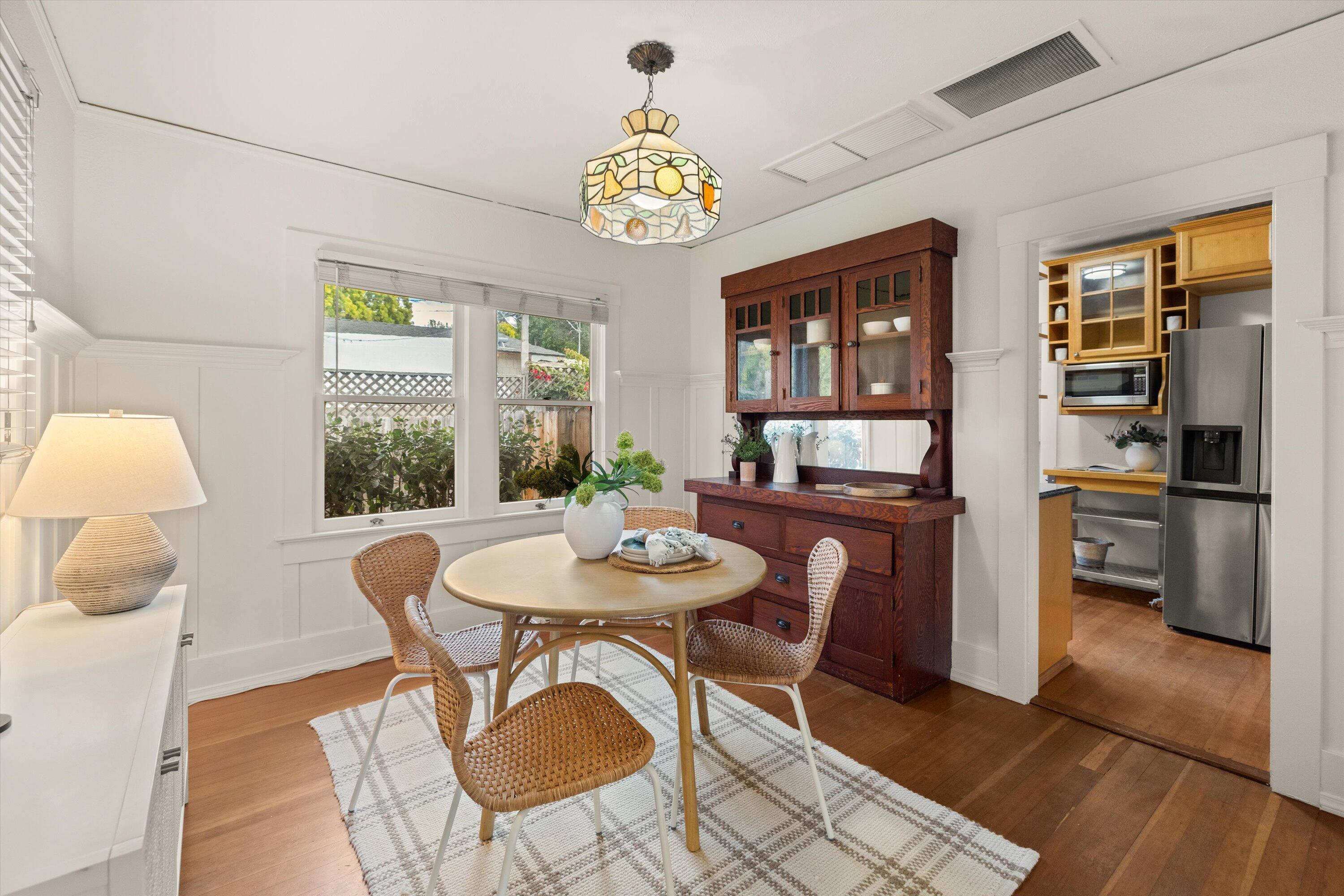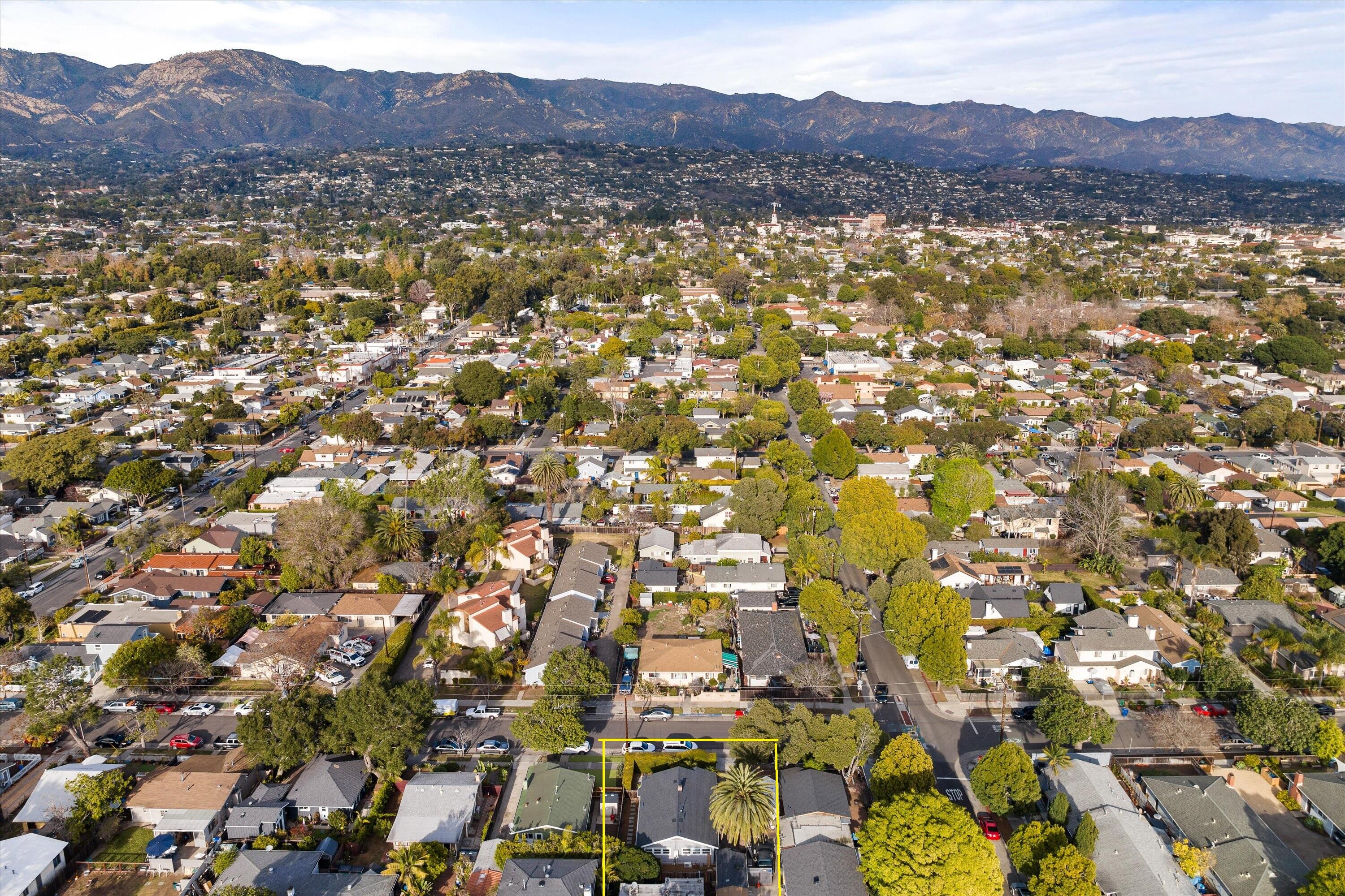 Step into this charming 1930's Craftsman-style bungalow with permitted studio ADU circa 2023, located on a quiet street on Santa Barbara's Westside. Offering the best of vintage appeal with valuable updates, this home is situated behind a beautiful privacy hedge and greets you with a classic front porch and ultra private front yard space. Features include three bedrooms; one of which could live as an office/den space, one and a half bathrooms, a formal dining room with original built-in buffet, inviting living room with lots of windows and a newer gas fireplace. Rich wood floors, a newer roof, tankless water heater, newer electric panel, new paint and citrus trees add to the highlights of the home. The detached, permitted studio ADU built in 2023 offers many options for use such as family or guest space, a private work space or as an income producing rental. Located at the end of the long driveway with ample parking, extra outdoor space and next to a gorgeous, giant palm tree, the studio ADU includes a bathroom with shower, generous kitchen area, a built-in murphy bed, desk space and all the trimmings to move right in! Located in the central part of Santa Barbara's popular Westside with recent pedestrian and bicycle improvements, 1407 Gillespie has amazing access to the heart of Santa Barbara - just minutes to Downtown SB, The Mesa, beaches, parks, shopping, dining and more.