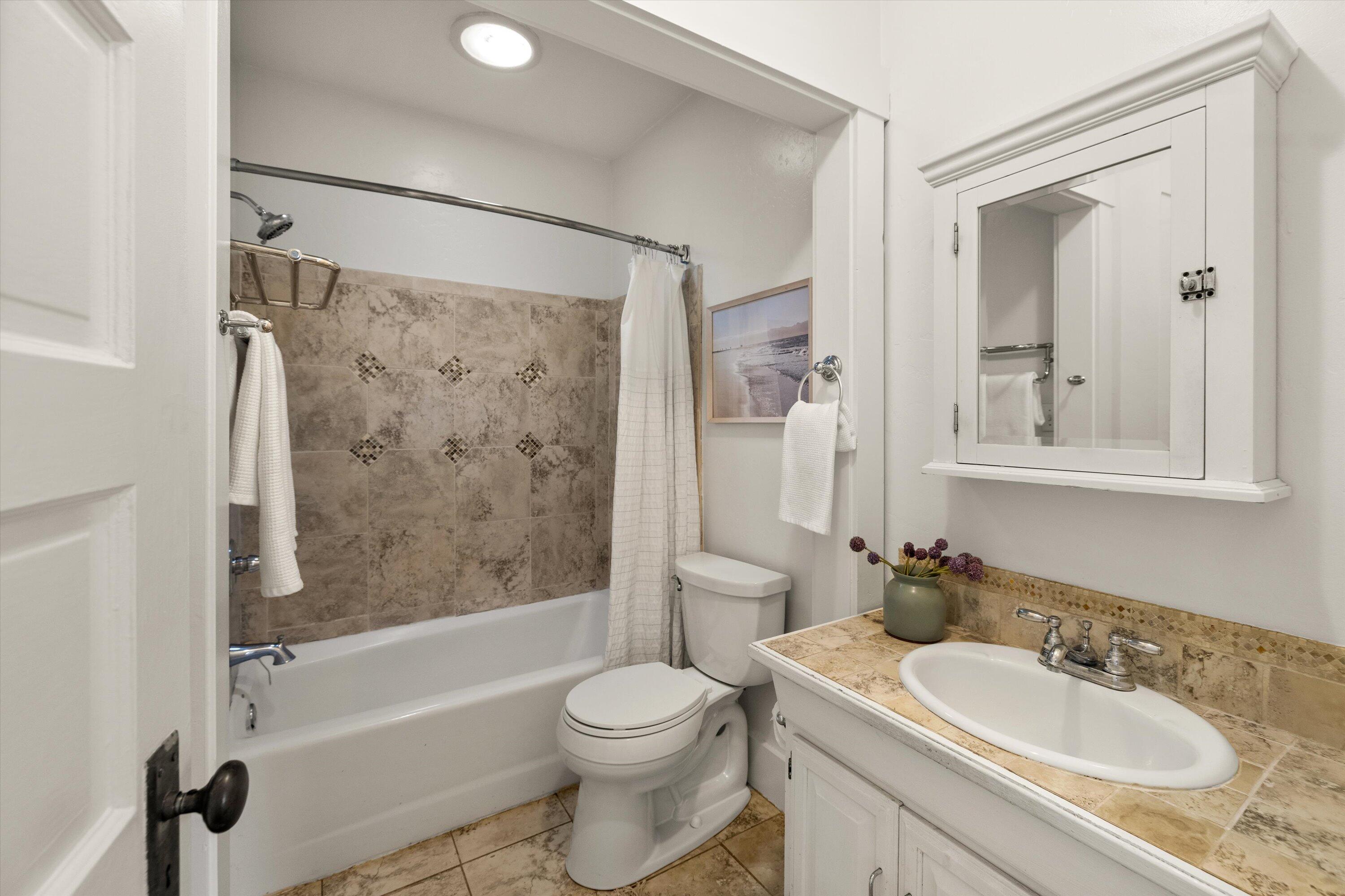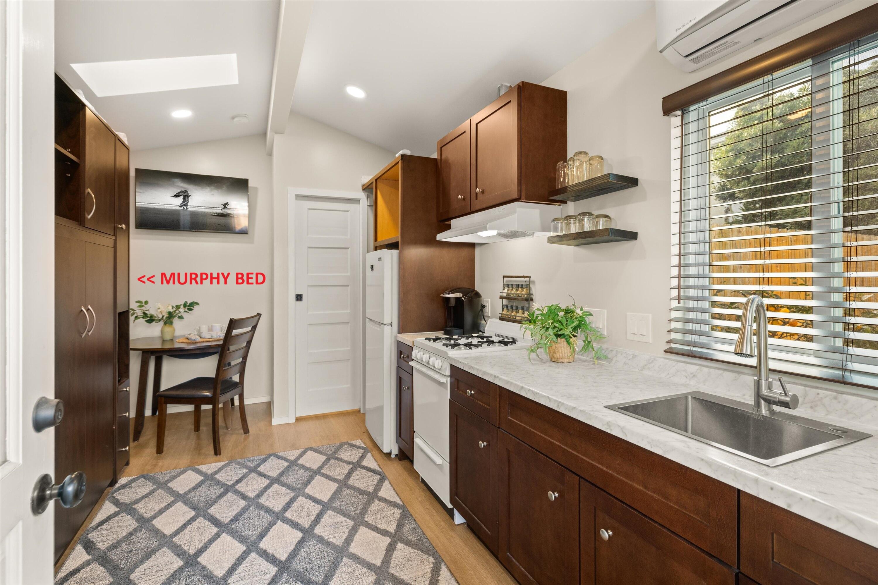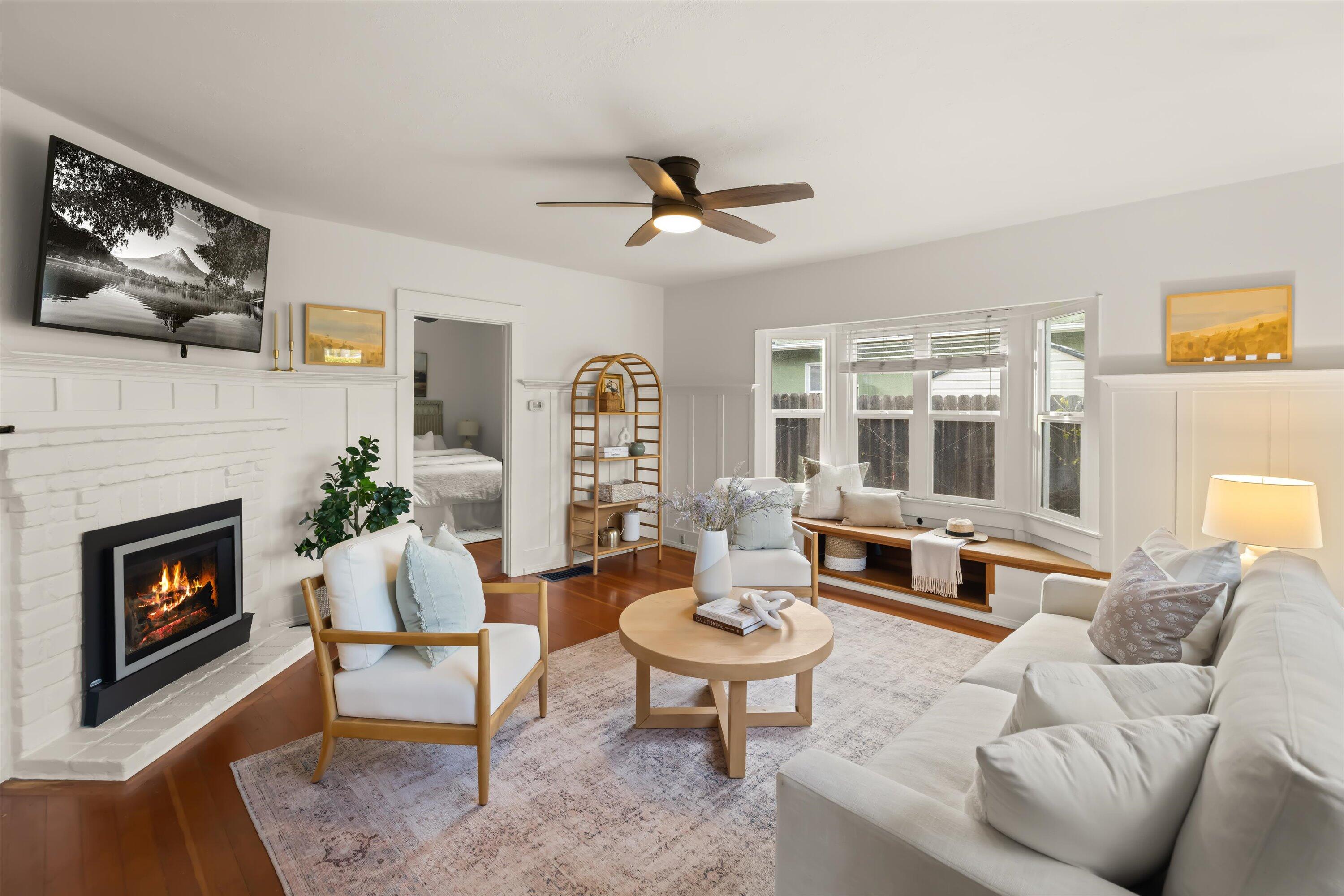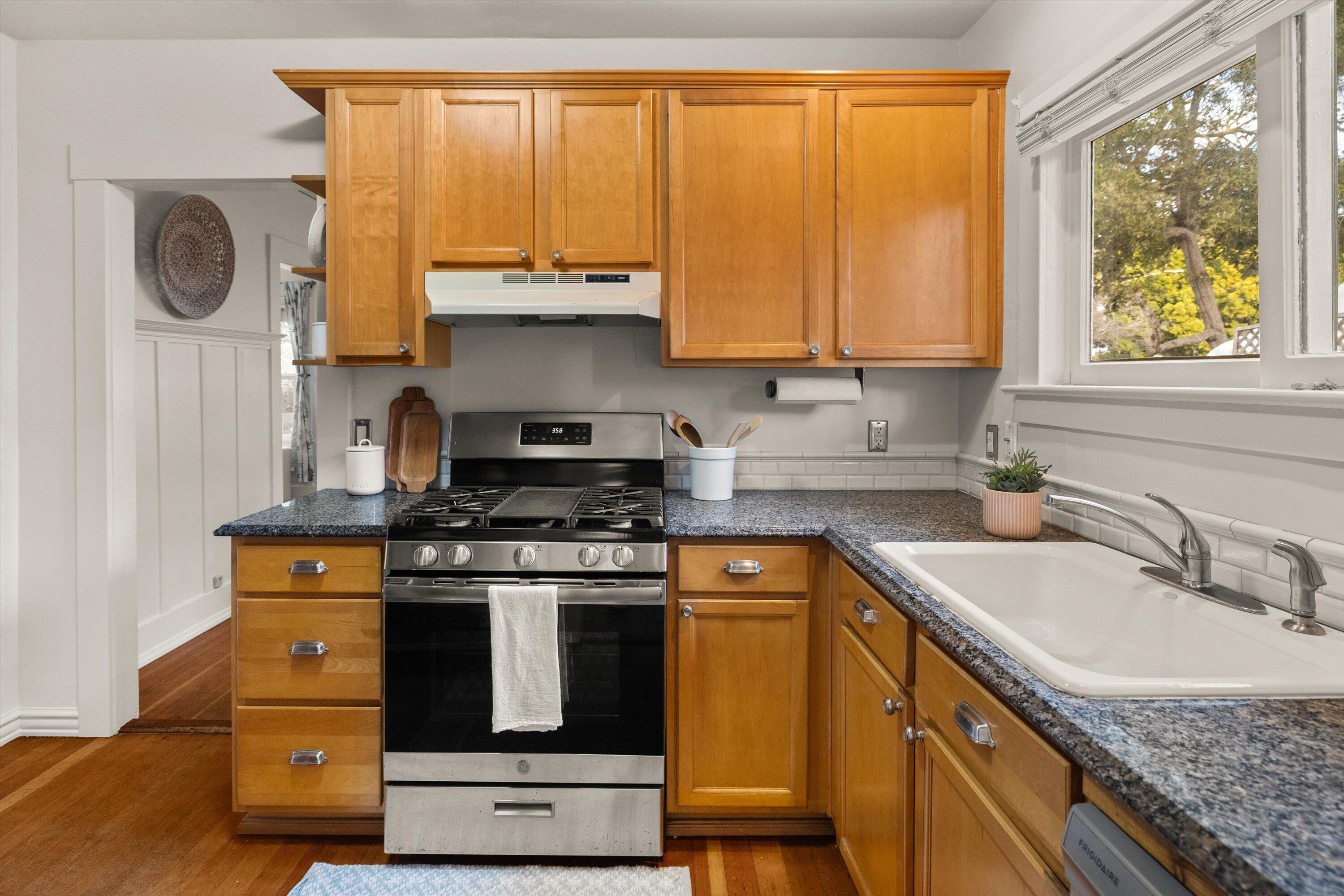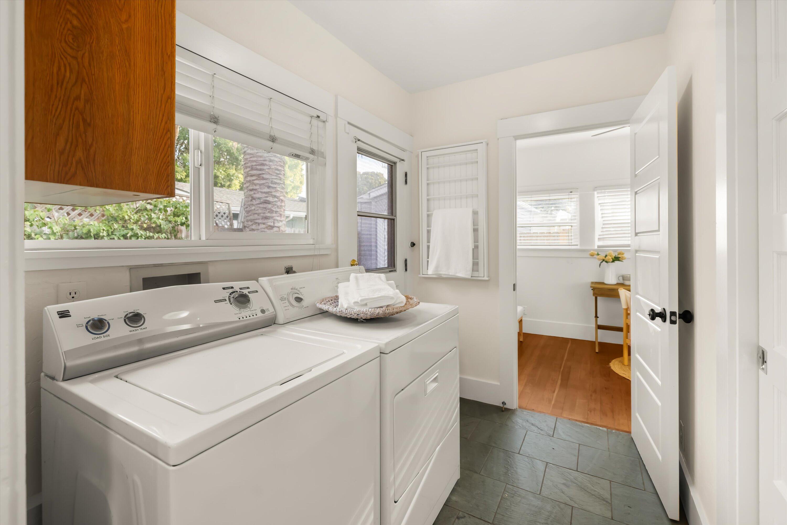 Step into this charming 1930's Craftsman-style bungalow with permitted studio ADU circa 2023, located on a quiet street on Santa Barbara's Westside. Offering the best of vintage appeal with valuable updates, this home is situated behind a beautiful privacy hedge and greets you with a classic front porch and ultra private front yard space. Features include three bedrooms; one of which could live as an office/den space, one and a half bathrooms, a formal dining room with original built-in buffet, inviting living room with lots of windows and a newer gas fireplace. Rich wood floors, a newer roof, tankless water heater, newer electric panel, new paint and citrus trees add to the highlights of the home. The detached, permitted studio ADU built in 2023 offers many options for use such as family or guest space, a private work space or as an income producing rental. Located at the end of the long driveway with ample parking, extra outdoor space and next to a gorgeous, giant palm tree, the studio ADU includes a bathroom with shower, generous kitchen area, a built-in murphy bed, desk space and all the trimmings to move right in! Located in the central part of Santa Barbara's popular Westside with recent pedestrian and bicycle improvements, 1407 Gillespie has amazing access to the heart of Santa Barbara - just minutes to Downtown SB, The Mesa, beaches, parks, shopping, dining and more.