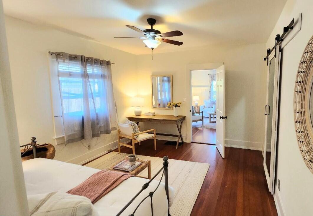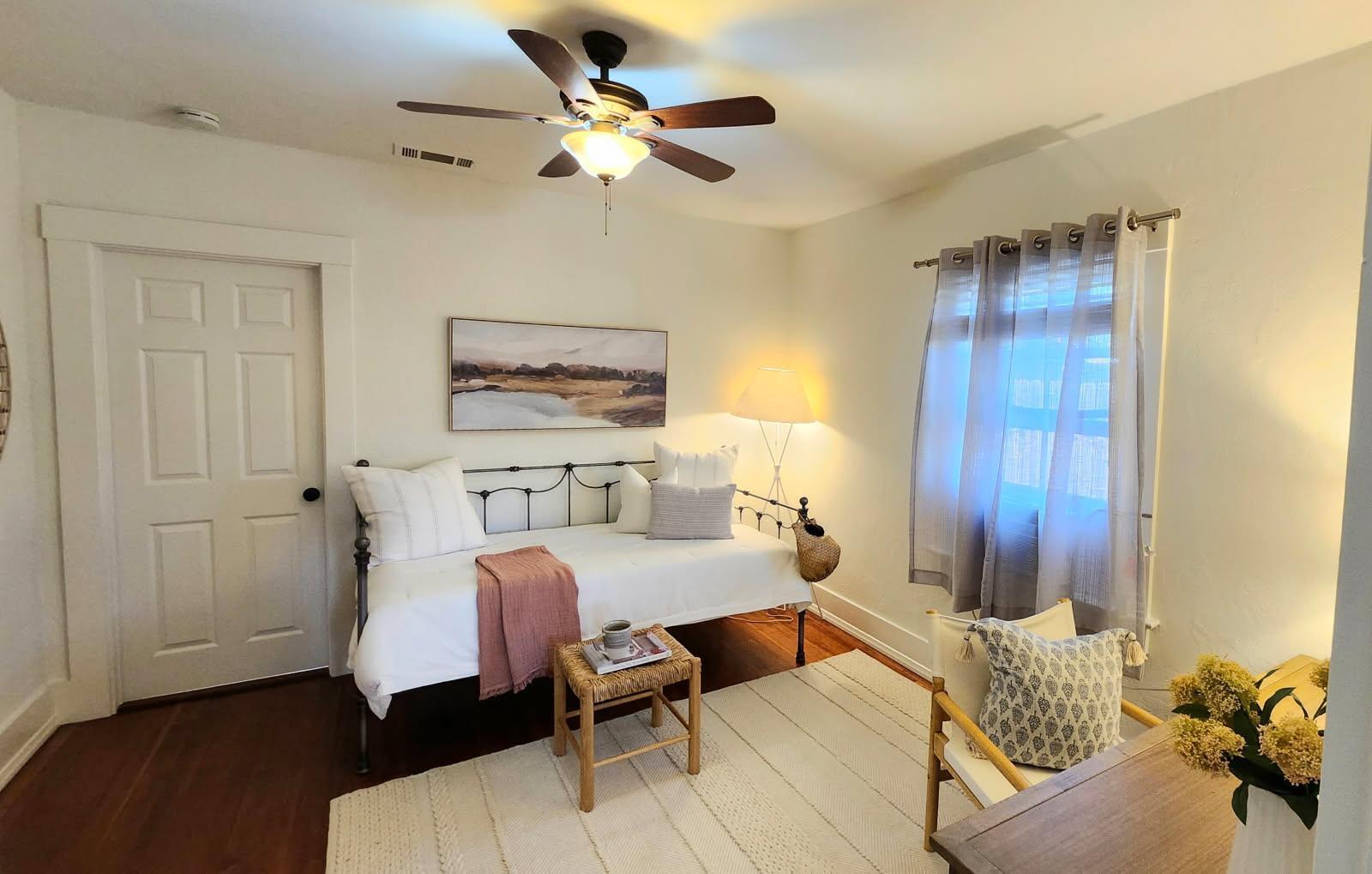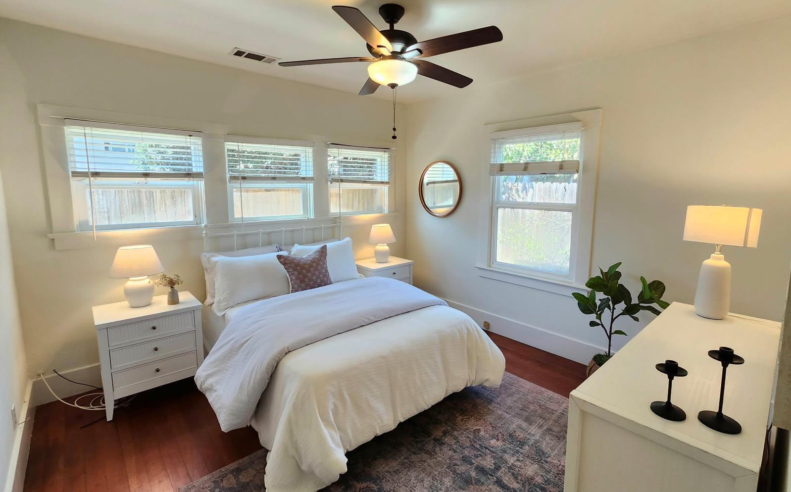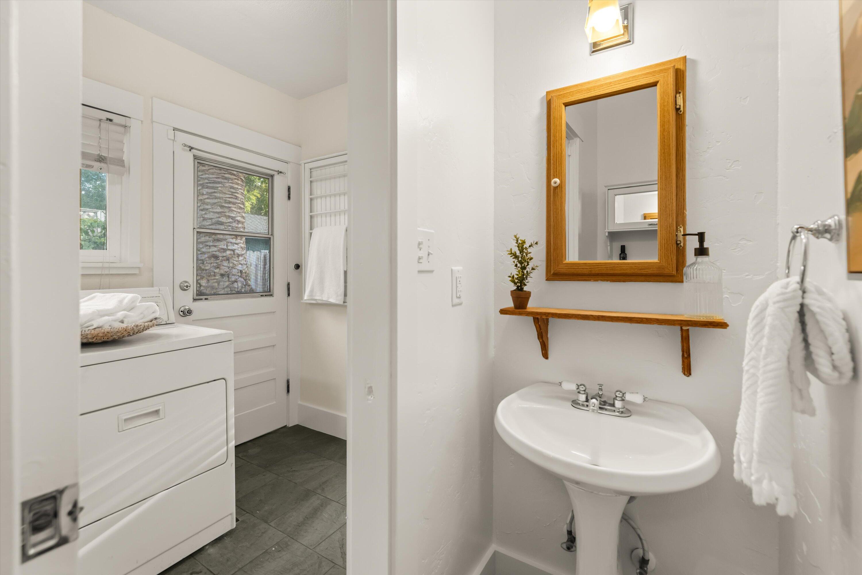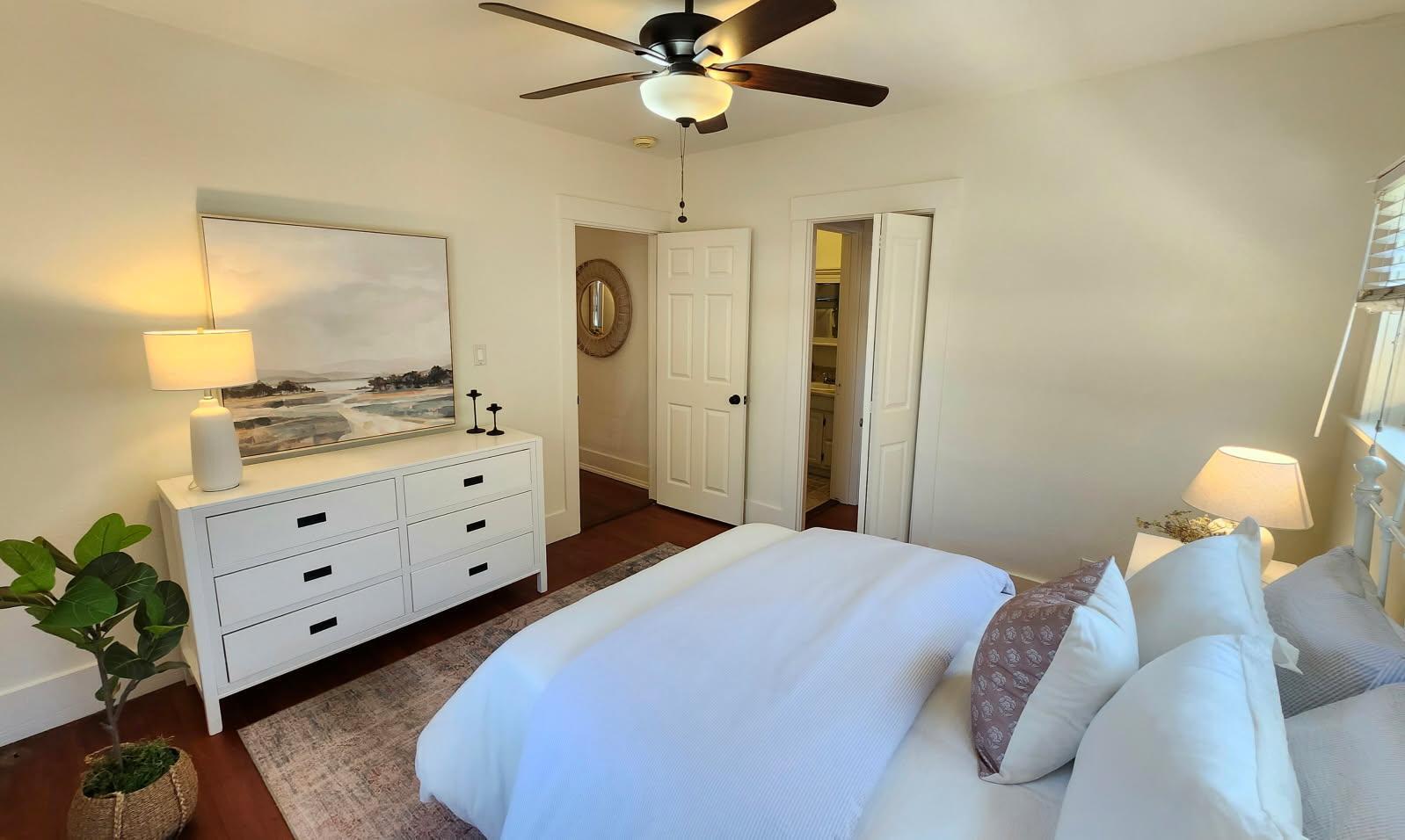 Step into this charming 1930's Craftsman-style bungalow with permitted studio ADU circa 2023, located on a quiet street on Santa Barbara's Westside. Offering the best of vintage appeal with valuable updates, this home is situated behind a beautiful privacy hedge and greets you with a classic front porch and ultra private front yard space. Features include three bedrooms; one of which could live as an office/den space, one and a half bathrooms, a formal dining room with original built-in buffet, inviting living room with lots of windows and a newer gas fireplace. Rich wood floors, a newer roof, tankless water heater, newer electric panel, new paint and citrus trees add to the highlights of the home. The detached, permitted studio ADU built in 2023 offers many options for use such as family or guest space, a private work space or as an income producing rental. Located at the end of the long driveway with ample parking, extra outdoor space and next to a gorgeous, giant palm tree, the studio ADU includes a bathroom with shower, generous kitchen area, a built-in murphy bed, desk space and all the trimmings to move right in! Located in the central part of Santa Barbara's popular Westside with recent pedestrian and bicycle improvements, 1407 Gillespie has amazing access to the heart of Santa Barbara - just minutes to Downtown SB, The Mesa, beaches, parks, shopping, dining and more.