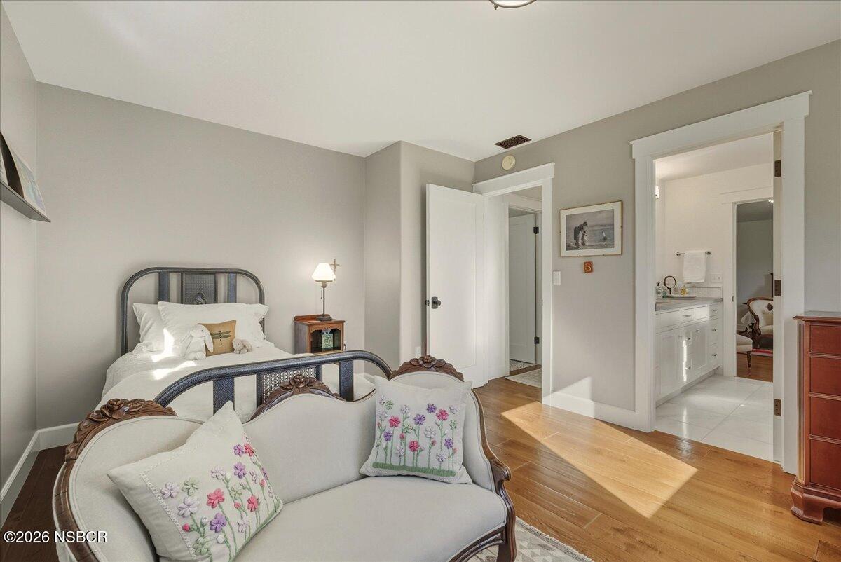 Set atop a picturesque hill and framed by vineyards and orchards, this peaceful Santa Ynez Valley ranch captures sweeping mountain and valley views within the highly sought-after Ballard School District. Spanning approximately five acres behind private entry gates, the property's centerpiece is a beautifully remodeled residence that blends timeless ranch charm with elevated modern comfort. The main home offers four bedrooms plus an office and three-and-a-half bathrooms, complemented by a separately accessed fifth bedroom with full bath--ideal as a guest retreat, gym, library, or au pair suite. Thoughtfully updated throughout, the home features wide-plank French oak flooring, beamed ceilings, limestone fireplaces, newer windows and doors, and refined, high-quality finishes at every turn. The expansive living room showcases breathtaking 180-degree views across rolling hills to iconic Figueroa Mountain and opens seamlessly to a serene covered porch and lush, manicured gardens beyond. At the heart of the home, the remodeled kitchen is both striking and functional, with honed granite countertops, a custom statement island, professional Viking range, coffee bar, and an additional beverage refrigerator--perfect for both everyday living and entertaining. The flowing floor plan offers multiple inviting living spaces with effortless access to outdoor decks, dining patios, and garden areas. The primary suite features vaulted ceilings, dual closets, a beautifully remodeled bath, and an adjacent flex space currently used as an office. A separate guest wing includes two bedrooms with a dual-entry bath, a generous laundry and mudroom, powder room, and an additional upstairs bedroom-and-bath suite.Designed with the casual equestrian in mind, the property includes a barn, four stalls, lighted arena, two horse corrals, and a charming chicken coop. Majestic heritage oaks, mature fruit trees, and vibrant gardens enhance the natural beauty of the setting, while owned solar panels and a four-car garage with electric vehicle charging add modern convenience. Ideally located just minutes from Los Olivos, Ballard, and the heart of Santa Ynez Valley wine country, this exceptional ranch offers privacy, beauty, and an enviable lifestyle in one of the region's most coveted locations.