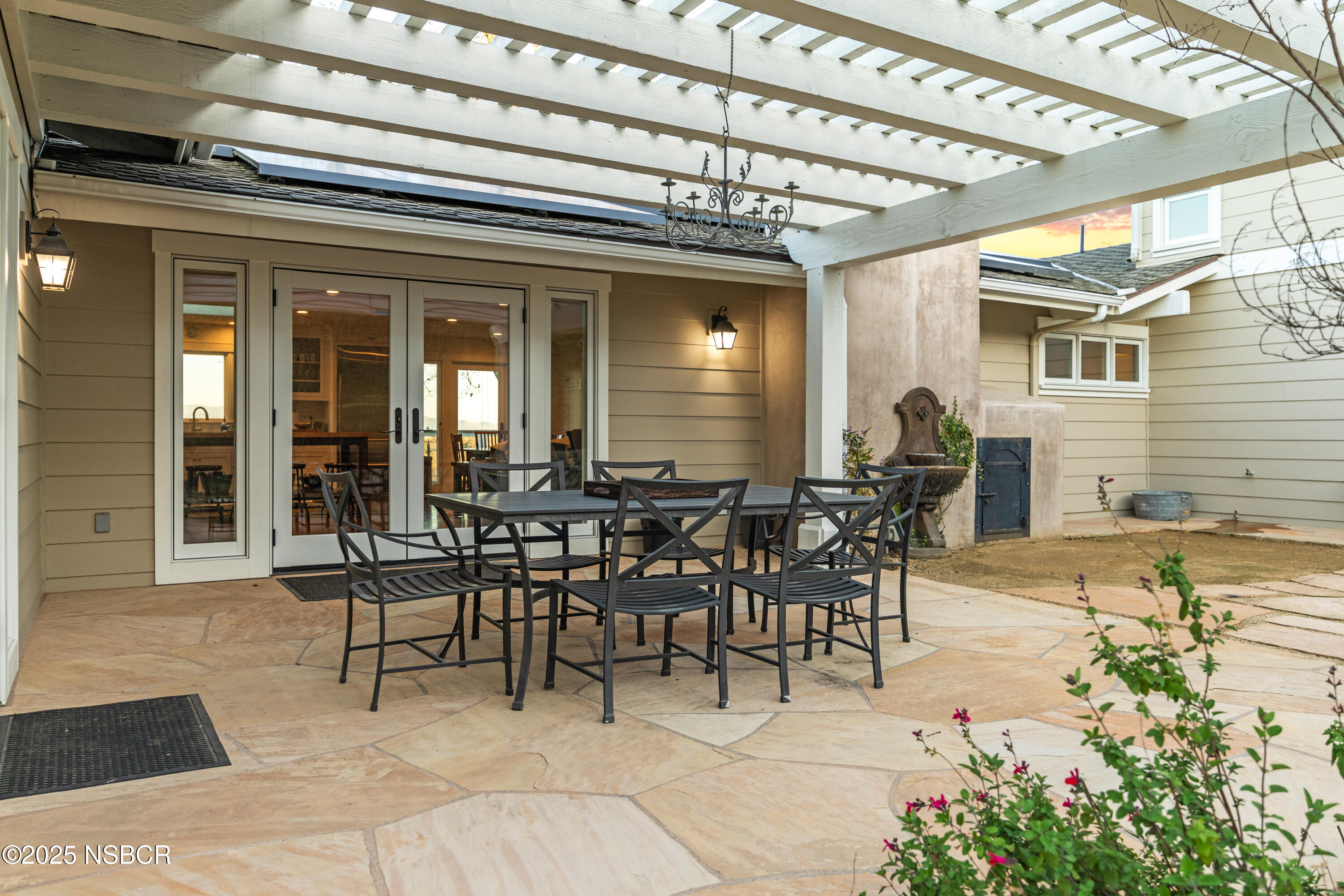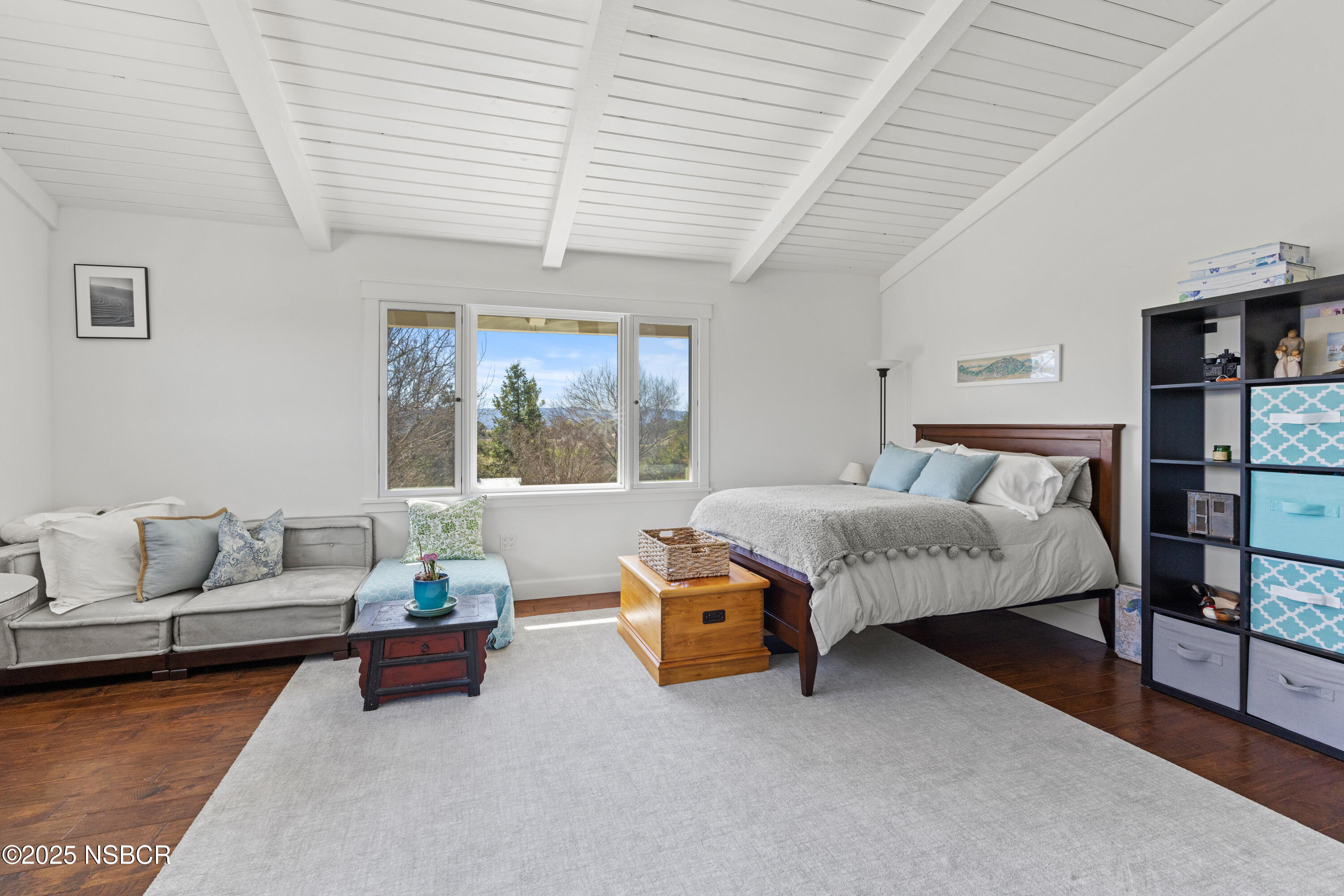 Set atop a picturesque hill and framed by vineyards and orchards, this peaceful Santa Ynez Valley ranch captures sweeping mountain and valley views within the highly sought-after Ballard School District. Spanning approximately five acres behind private entry gates, the property's centerpiece is a beautifully remodeled residence that blends timeless ranch charm with elevated modern comfort. The main home offers four bedrooms plus an office and three-and-a-half bathrooms, complemented by a separately accessed fifth bedroom with full bath--ideal as a guest retreat, gym, library, or au pair suite. Thoughtfully updated throughout, the home features wide-plank French oak flooring, beamed ceilings, limestone fireplaces, newer windows and doors, and refined, high-quality finishes at every turn. The expansive living room showcases breathtaking 180-degree views across rolling hills to iconic Figueroa Mountain and opens seamlessly to a serene covered porch and lush, manicured gardens beyond. At the heart of the home, the remodeled kitchen is both striking and functional, with honed granite countertops, a custom statement island, professional Viking range, coffee bar, and an additional beverage refrigerator--perfect for both everyday living and entertaining. The flowing floor plan offers multiple inviting living spaces with effortless access to outdoor decks, dining patios, and garden areas. The primary suite features vaulted ceilings, dual closets, a beautifully remodeled bath, and an adjacent flex space currently used as an office. A separate guest wing includes two bedrooms with a dual-entry bath, a generous laundry and mudroom, powder room, and an additional upstairs bedroom-and-bath suite.