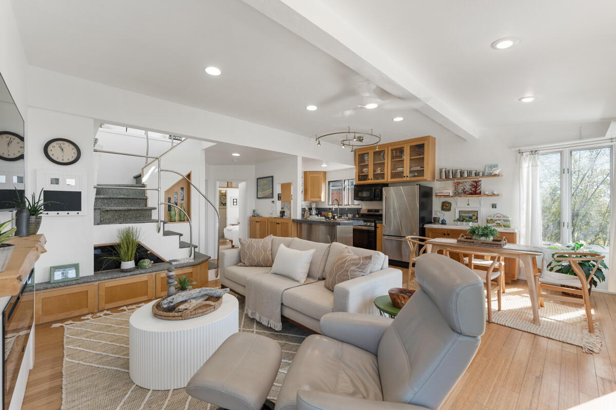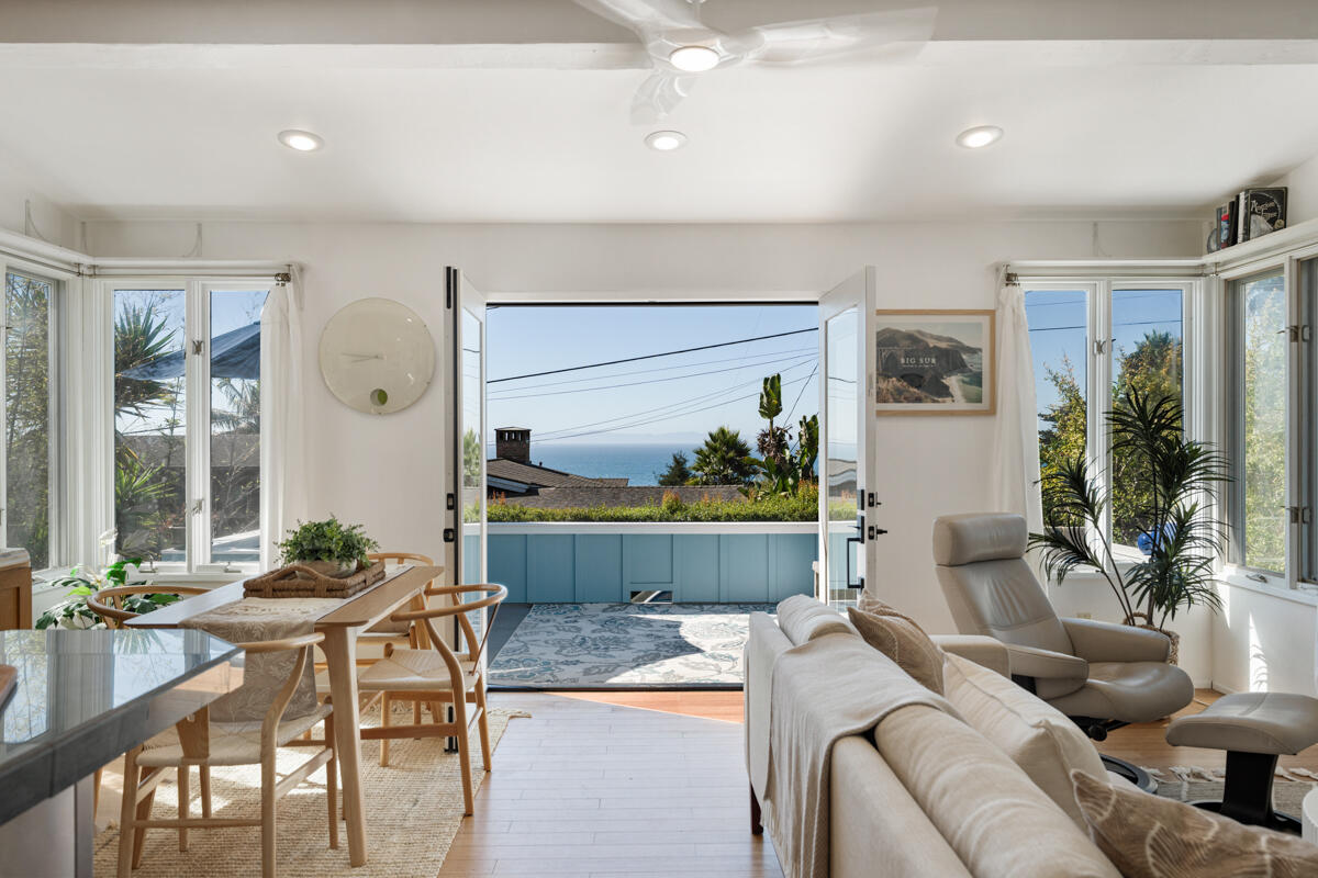 Endless Summer Living. Soak in the Summerland lifestyle where every day feels like vacation. Designed by Jerome White in 1997, this coastal gem was built for light, views, and ease. Expansive ocean-view decks off both the main living room and primary suite capture sweeping horizons and breezy sunsets, while custom details throughout add charm and warmth. Each bedroom enjoys its own private entrance, offering ultimate flexibility for guests or income potential. A versatile finished basement provides extra space for an office, studio, or recreation room. The attached 2-car garage ensures convenience, and the enclosed backyard offers room to garden, relax, or add a hot tub. With the beach and Lillie Ave's cafes, shops, and dining close by, this home delivers quintessential Summerland living.