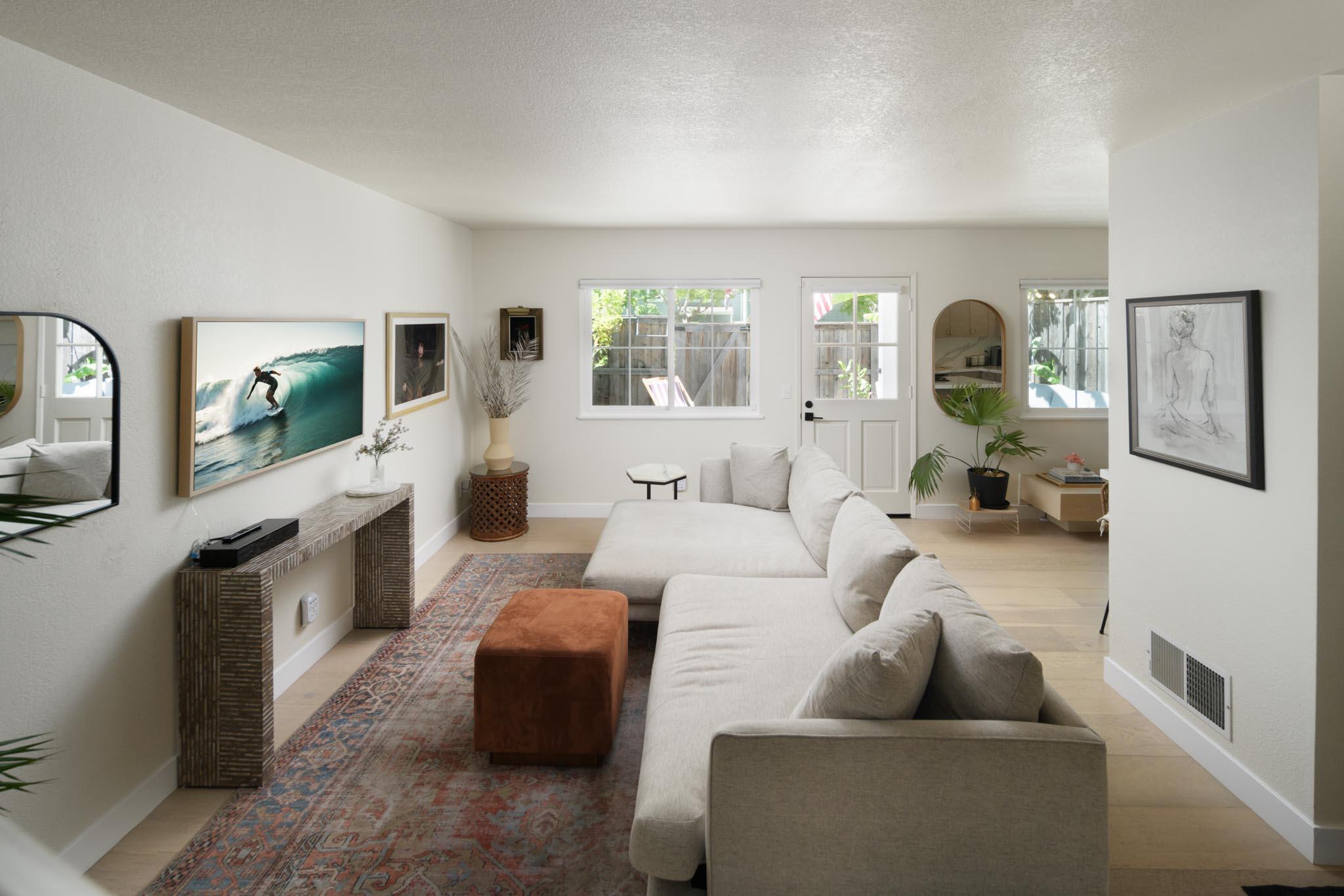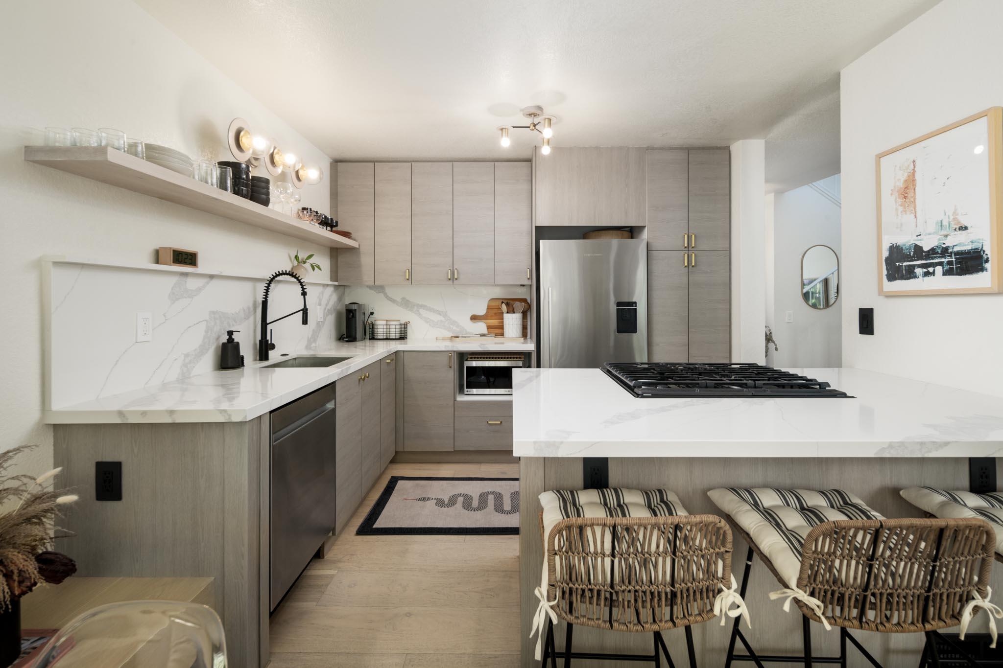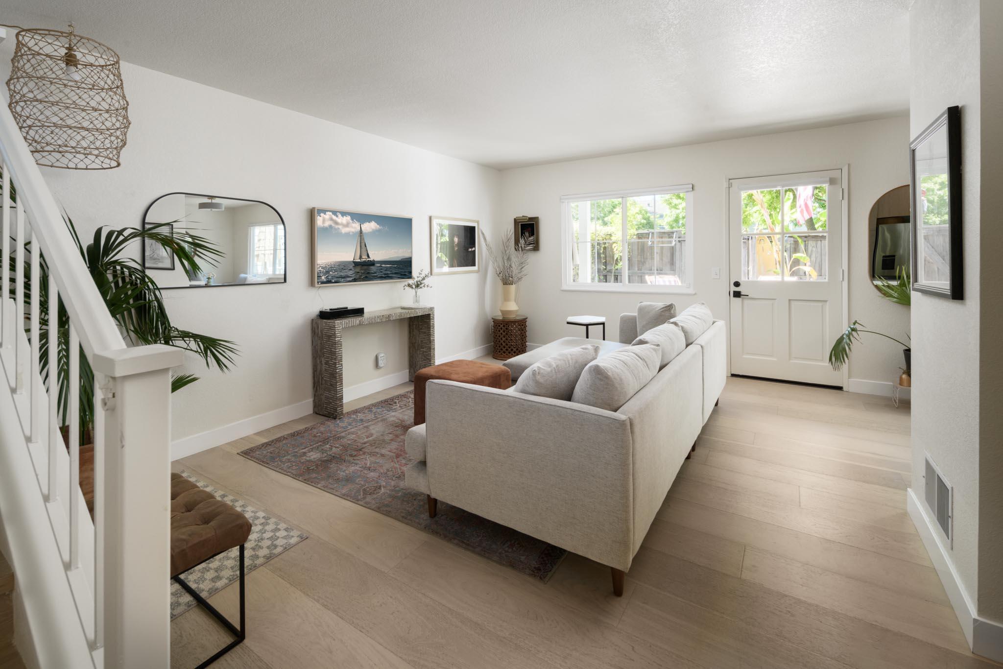 This beautifully renovated 2-bedroom, 1.5-bathroom townhome, spanning 1,104 sq ft, is situated in the sought-after Hope School District. The home boasts numerous upgrades, including a brand-new kitchen with modern appliances, custom cabinetry, quartz countertops, and a stylish banquette seating area. Additional improvements include new windows and doors, renovated bathrooms, wide plank oak flooring, updated lighting, new window coverings, a new furnace, and fresh paint throughout. The property also offers two assigned parking spots and an in-unit laundry room. Outside, the private backyard patio opens to a park-like greenbelt shaded by mature trees. Conveniently located near Los Robles Park, Hope School, restaurants, shops, and Upper State Street.