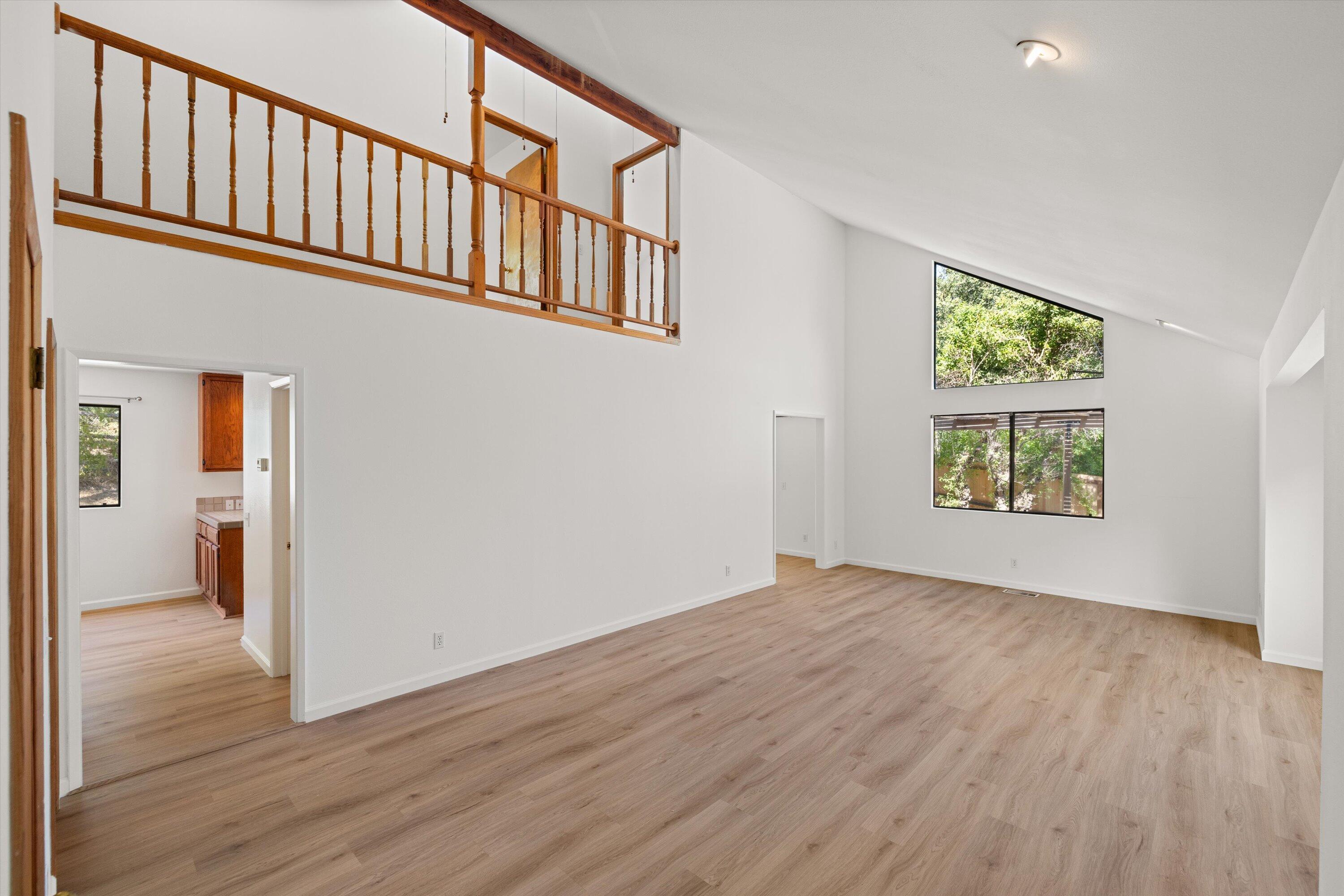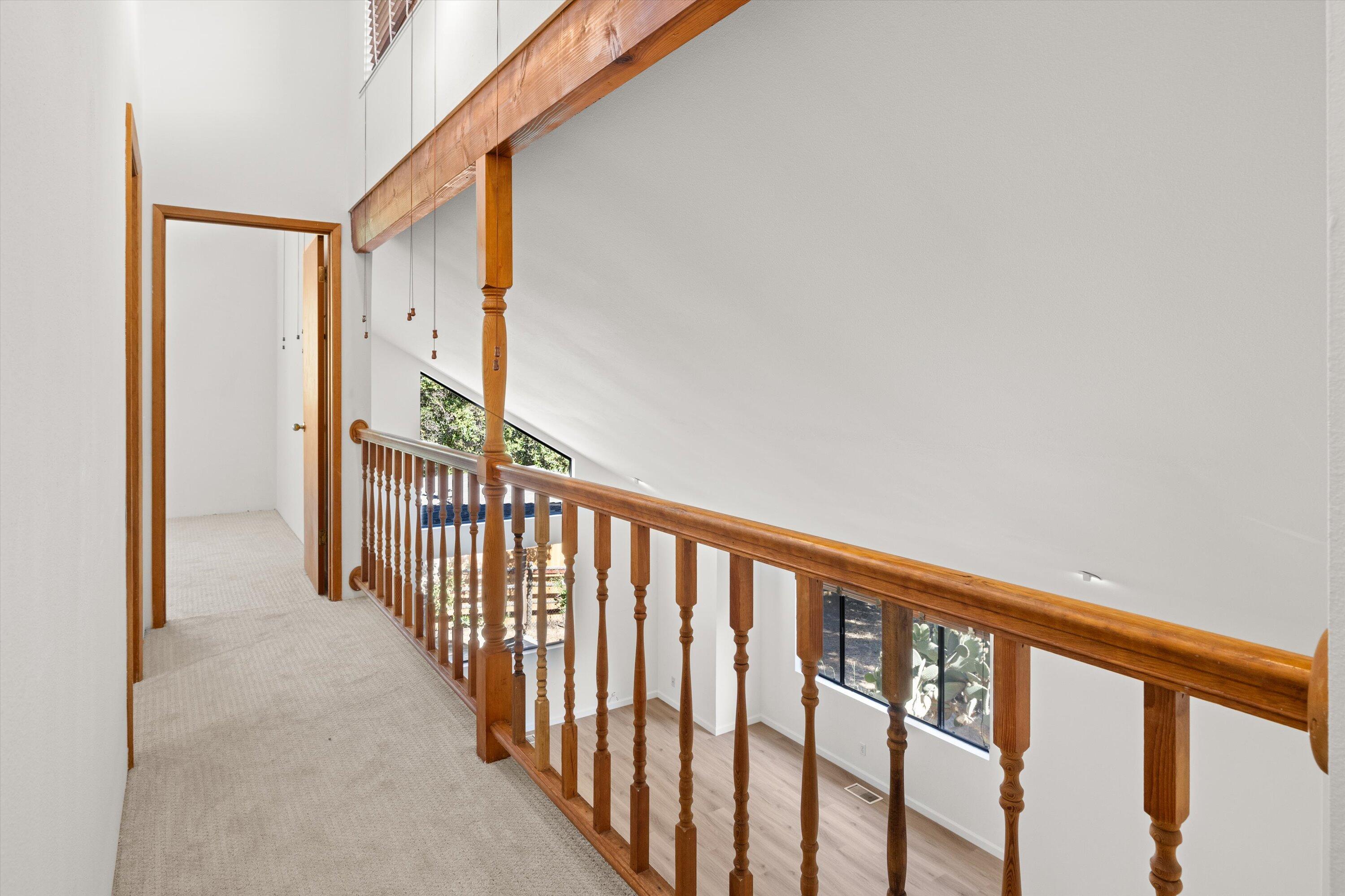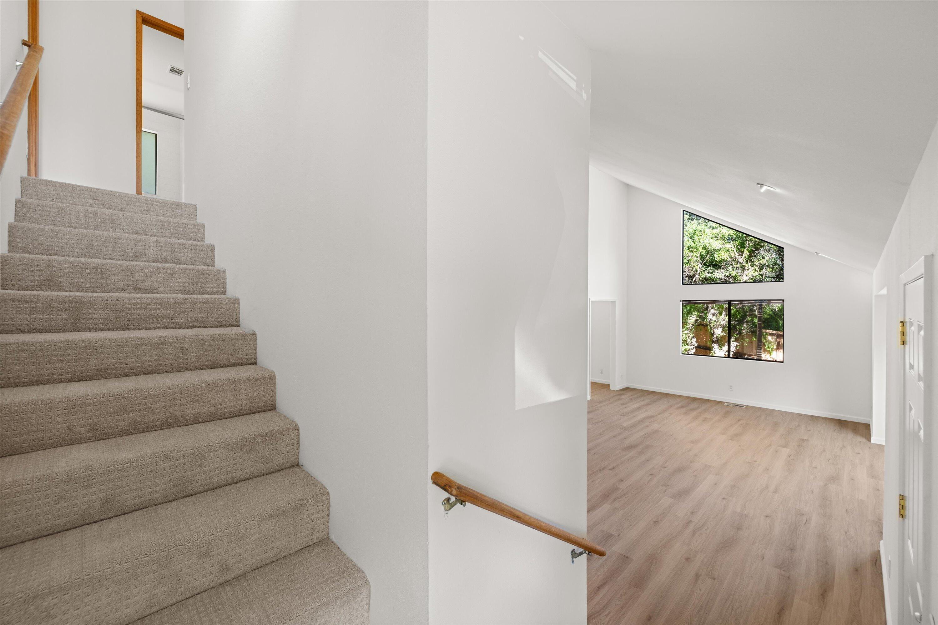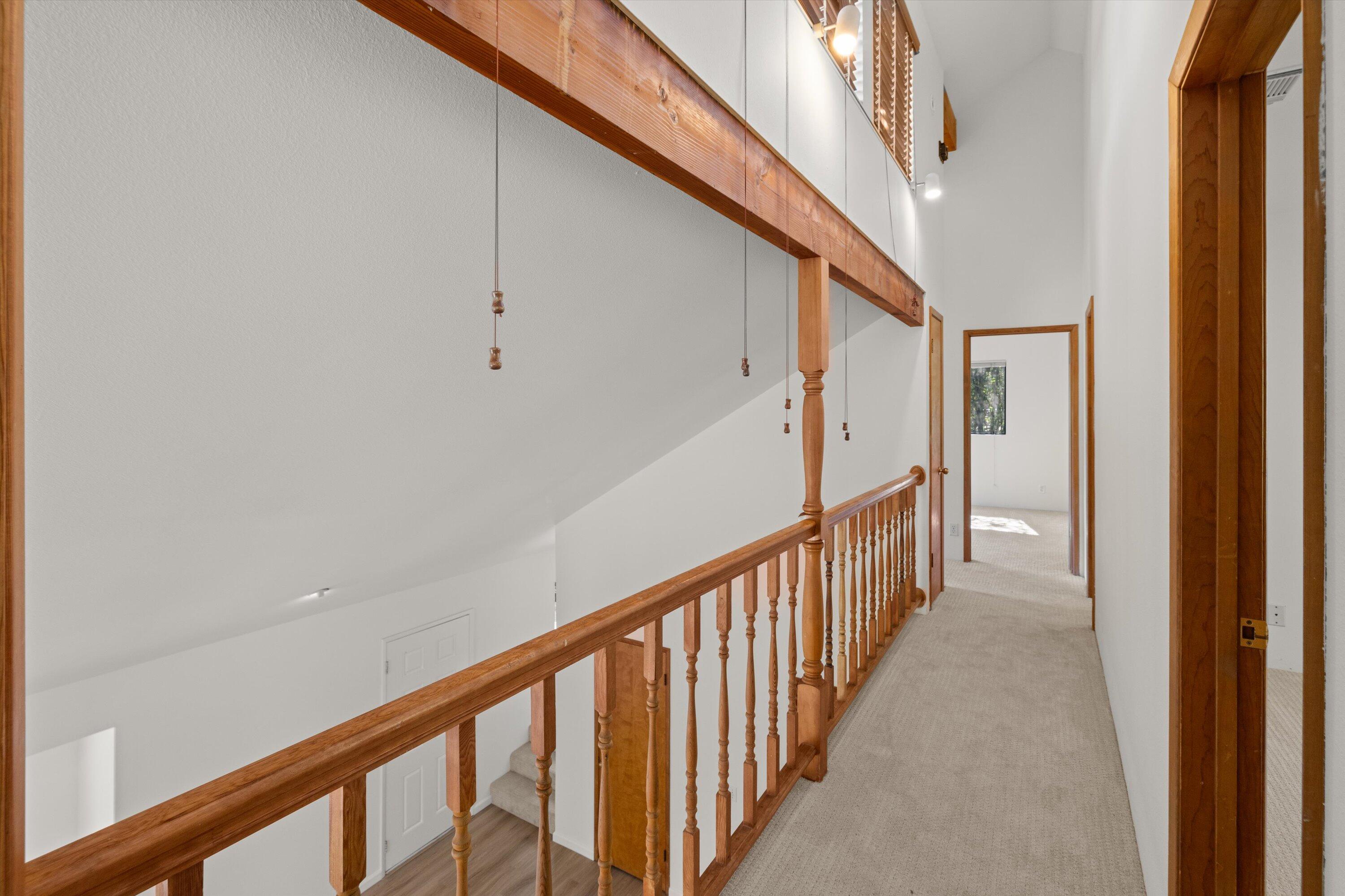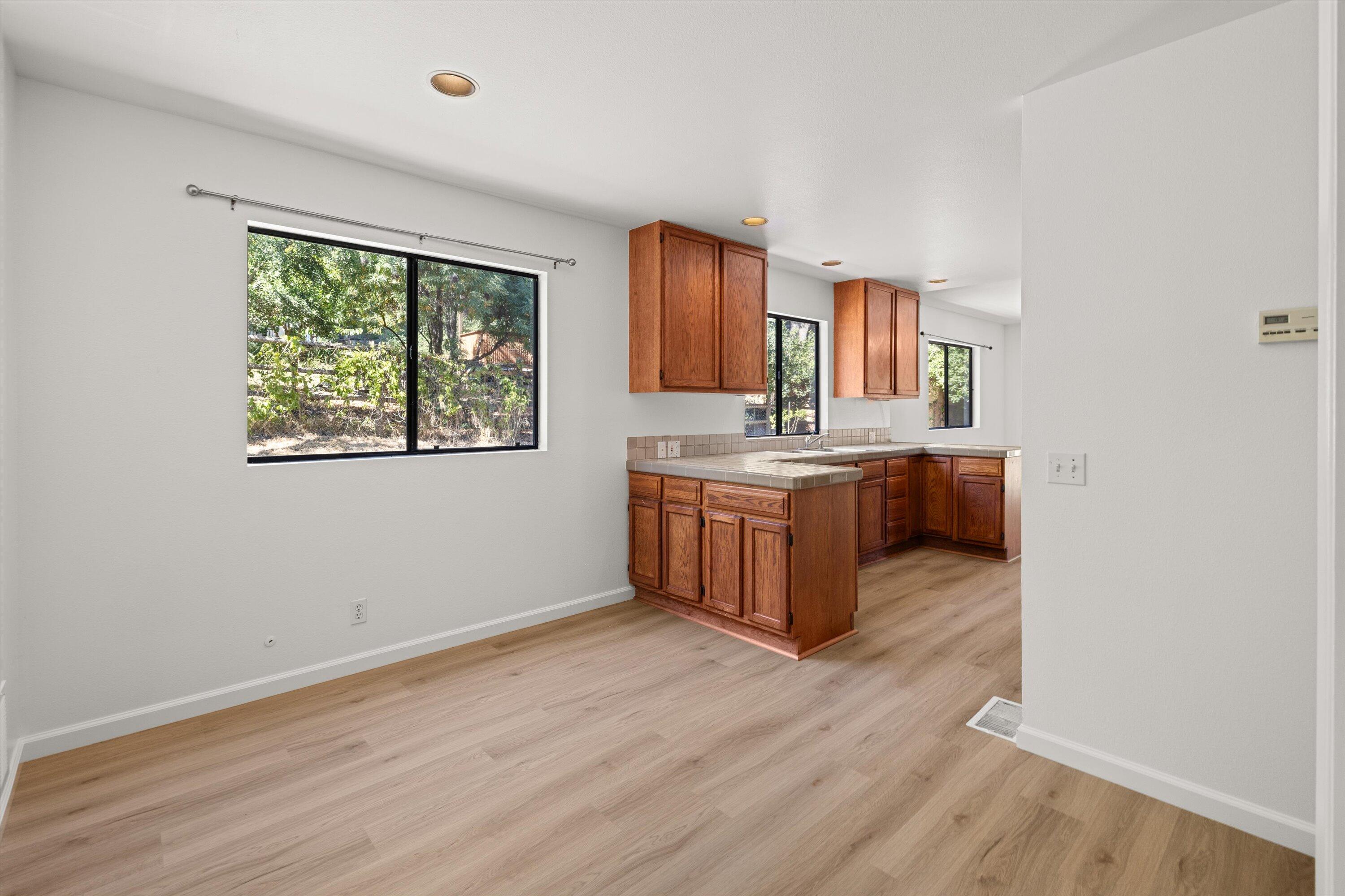 Welcome to 4856 Glenn Road - a gem in the peaceful Painted Cave community offering a light and inviting spacious floorplan on an oak-tree studded lot with plenty of beautiful natural scenery. Featuring 3 bedrooms and 2.5 bathrooms at 1,683 square feet this home boasts plenty of space and invites the nature views in. Upon entering the home you are greeted with tall vaulted ceilings and windows showcasing beautiful natural light and green views. The generous dining room with sliders to a side deck space plus bonus eat-in kitchen flank the open kitchen space, giving this home versatile entertaining and lifestyle options. All new luxury vinyl flooring, a large pantry with shelving in the hallway as well as laundry area, powder room and 1 car garage complete the entry level of the home. On the upper level of this cheerful home you will find brand new carpeting and an open hallway which adds to the open and bright flow. The primary suite offers a full bathroom and oversized walk-in closet. Another full bathroom is located between the primary bedroom and middle bedroom and a third bedroom on the end offers high vaulted ceilings with extra windows and a loft feel.