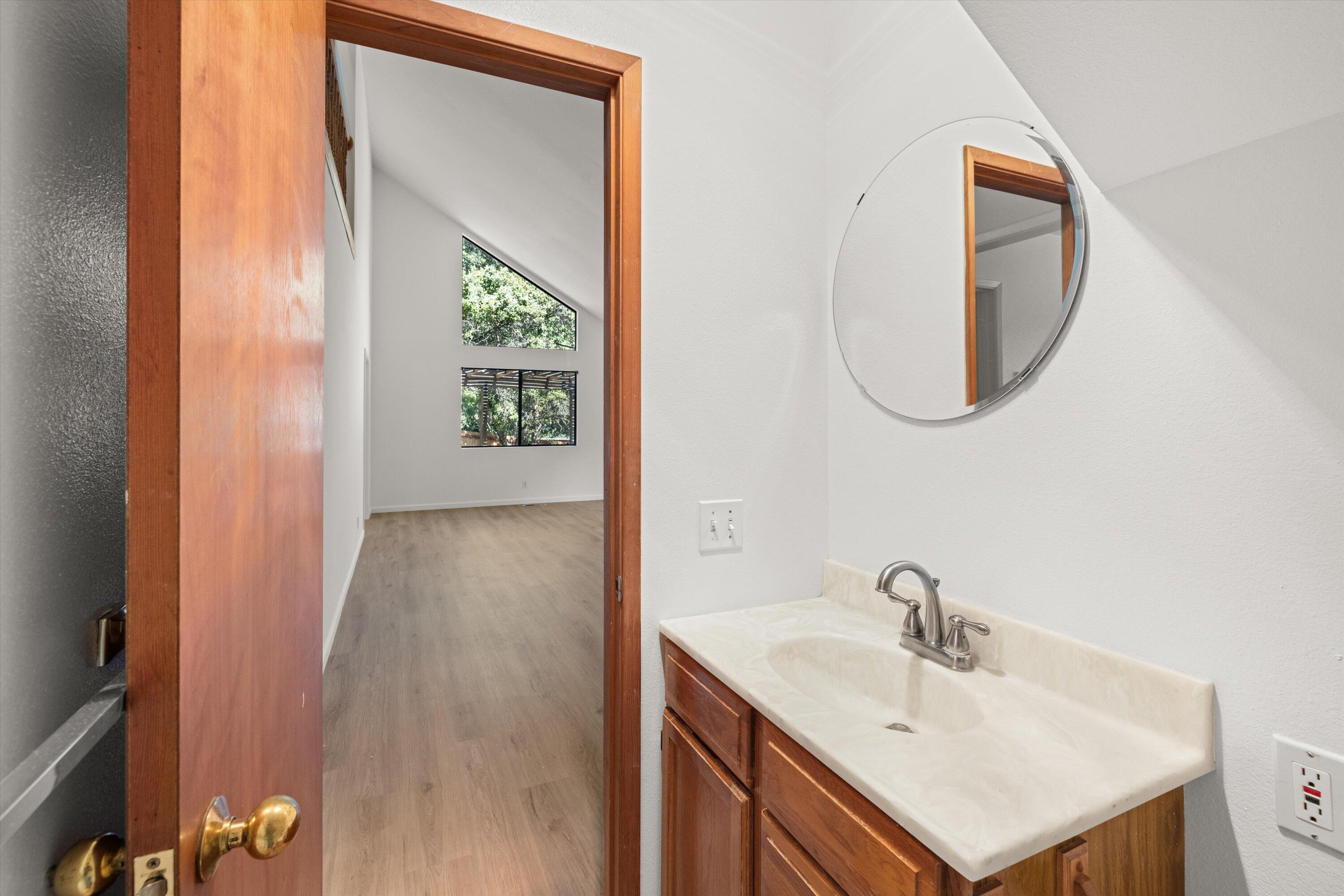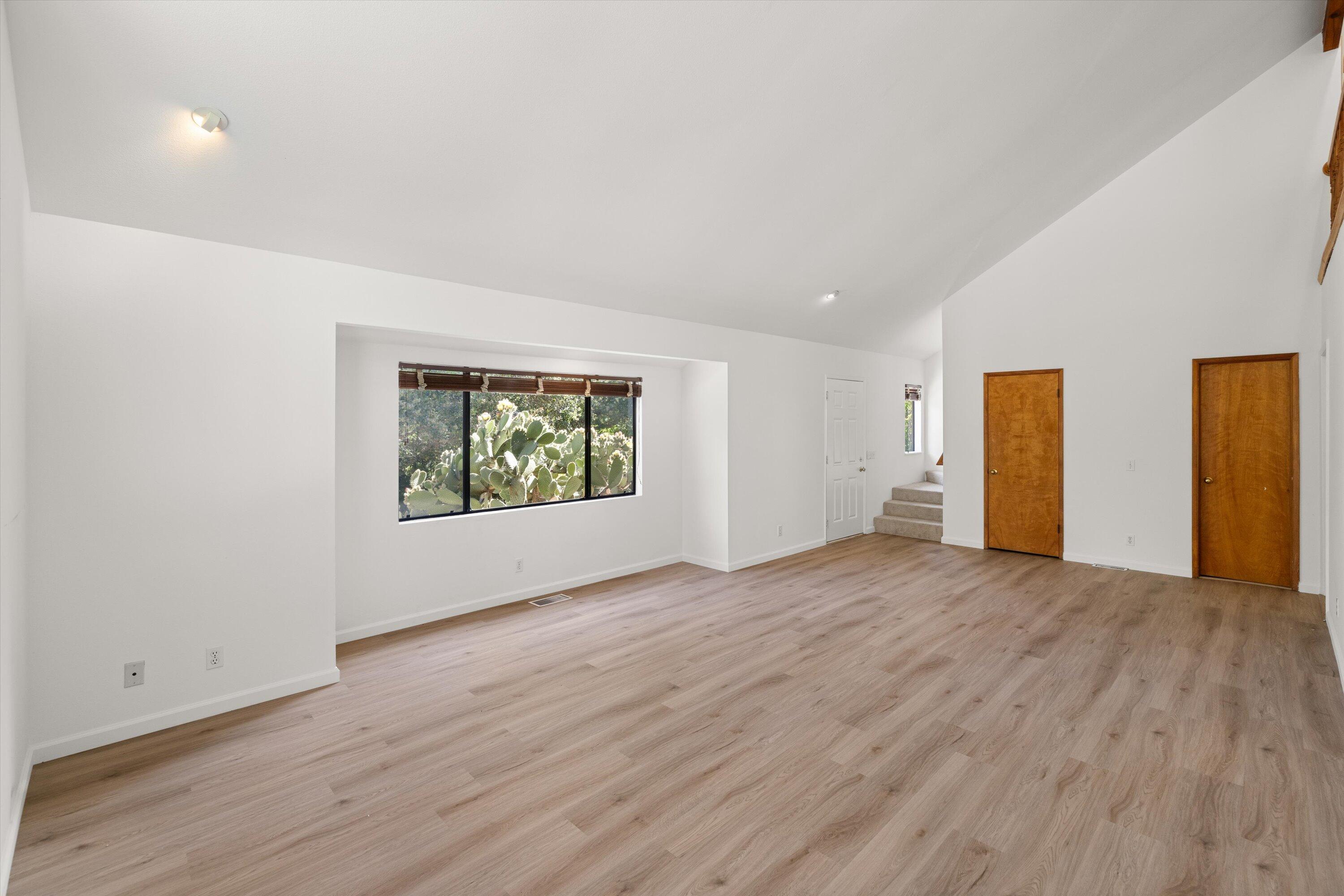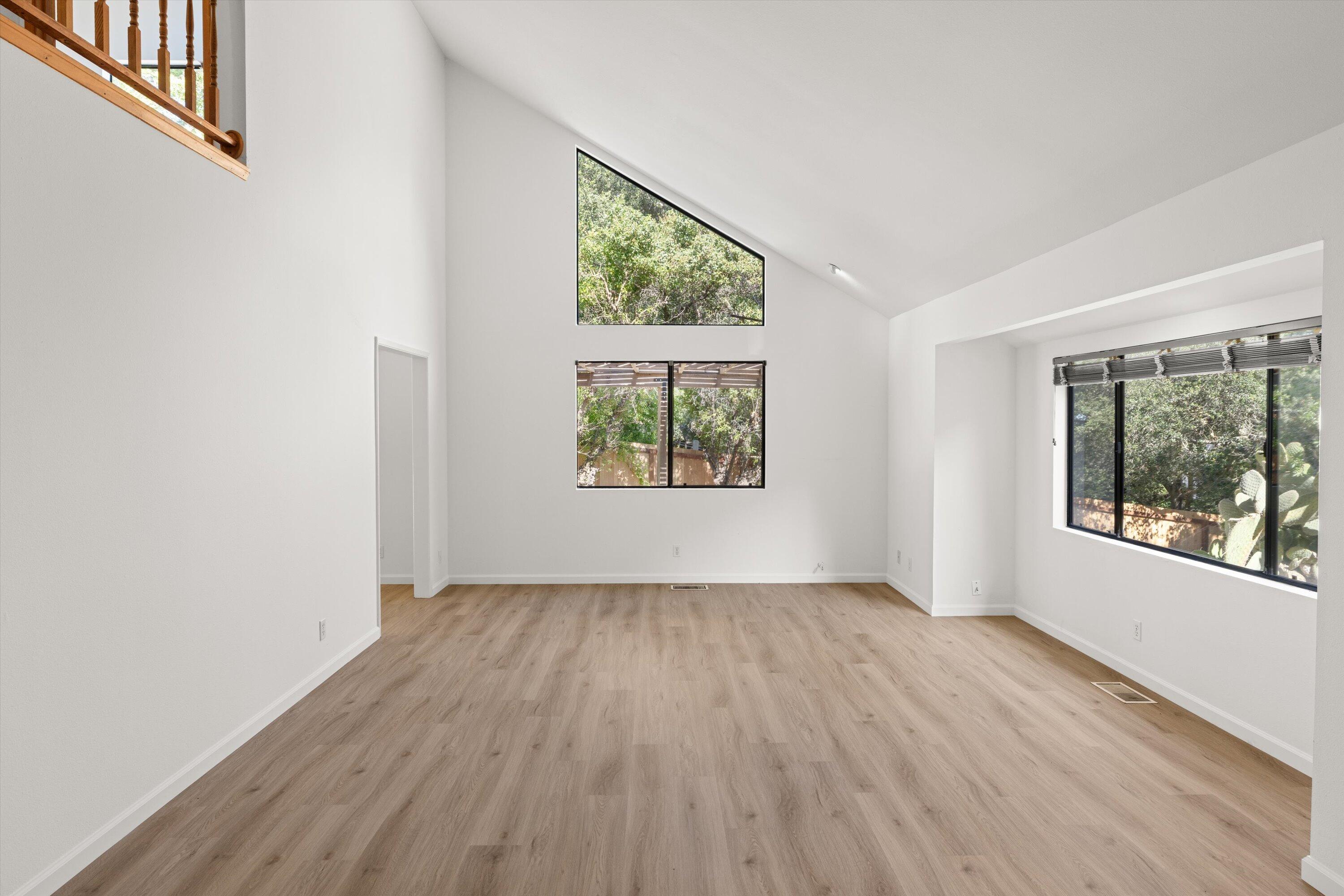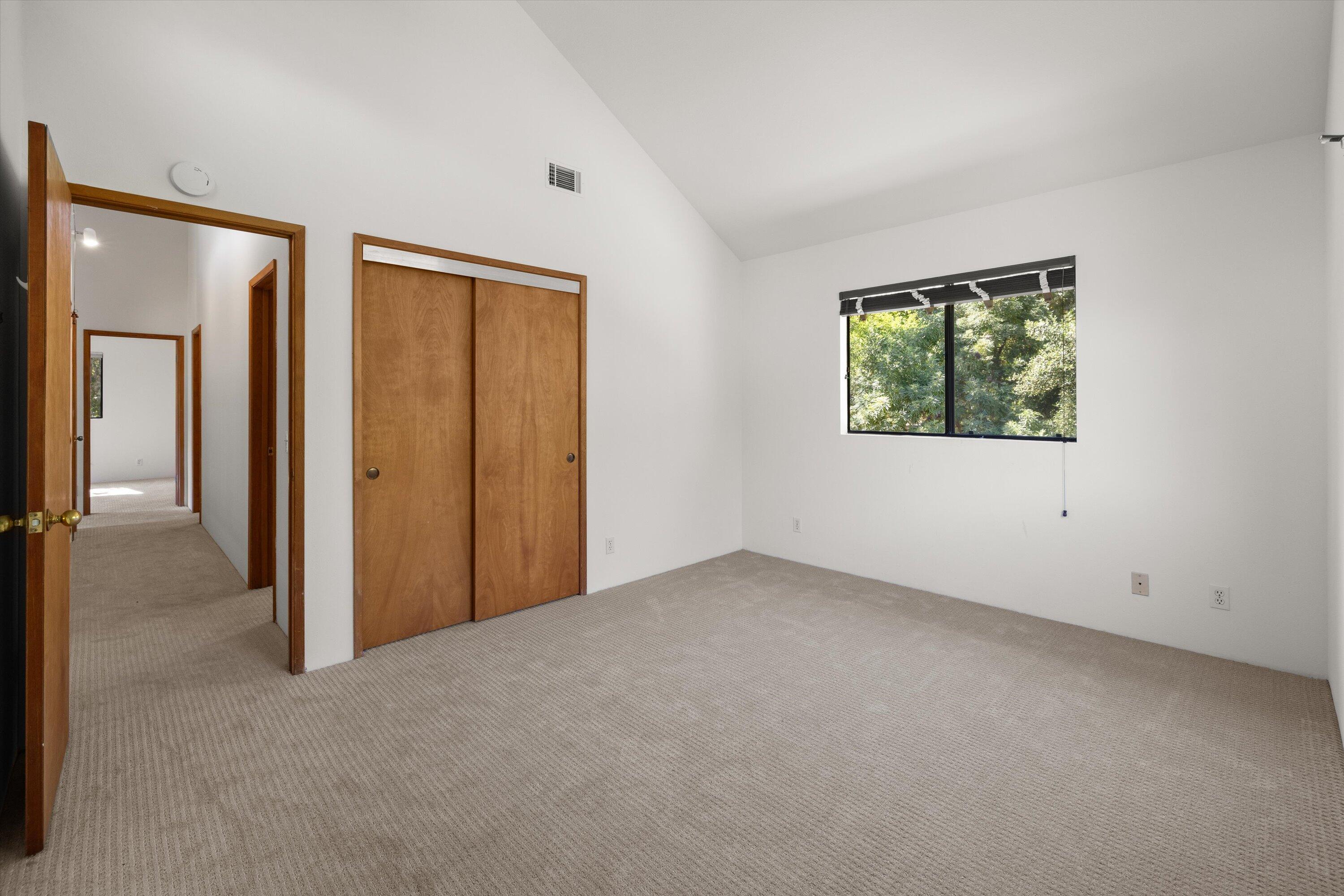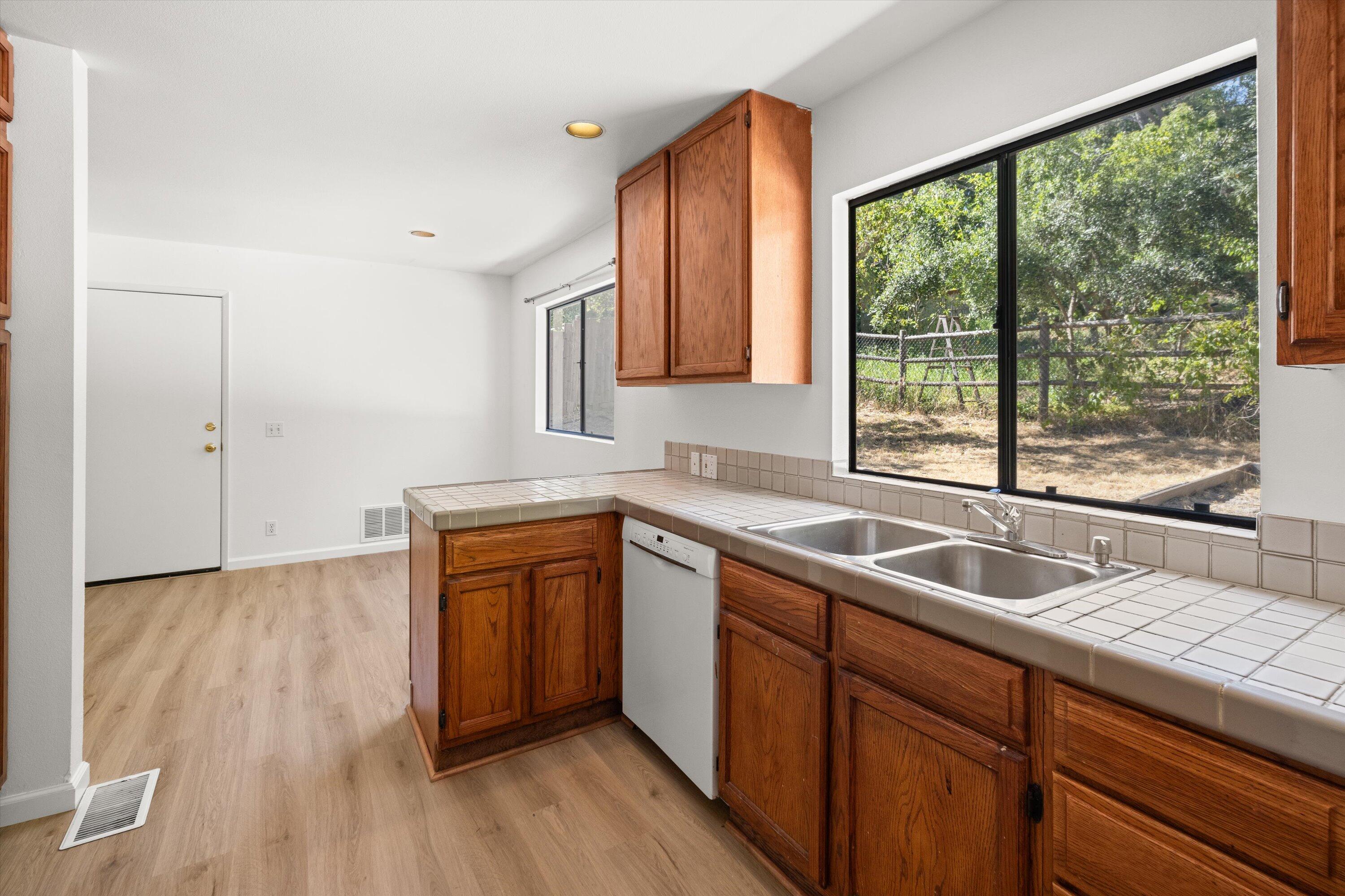 Welcome to 4856 Glenn Road - a gem in the peaceful Painted Cave community offering a light and inviting spacious floorplan on an oak-tree studded lot with plenty of beautiful natural scenery. Featuring 3 bedrooms and 2.5 bathrooms at 1,683 square feet this home boasts plenty of space and invites the nature views in. Upon entering the home you are greeted with tall vaulted ceilings and windows showcasing beautiful natural light and green views. The generous dining room with sliders to a side deck space plus bonus eat-in kitchen flank the open kitchen space, giving this home versatile entertaining and lifestyle options. All new luxury vinyl flooring, a large pantry with shelving in the hallway as well as laundry area, powder room and 1 car garage complete the entry level of the home. On the upper level of this cheerful home you will find brand new carpeting and an open hallway which adds to the open and bright flow. The primary suite offers a full bathroom and oversized walk-in closet. Another full bathroom is located between the primary bedroom and middle bedroom and a third bedroom on the end offers high vaulted ceilings with extra windows and a loft feel.