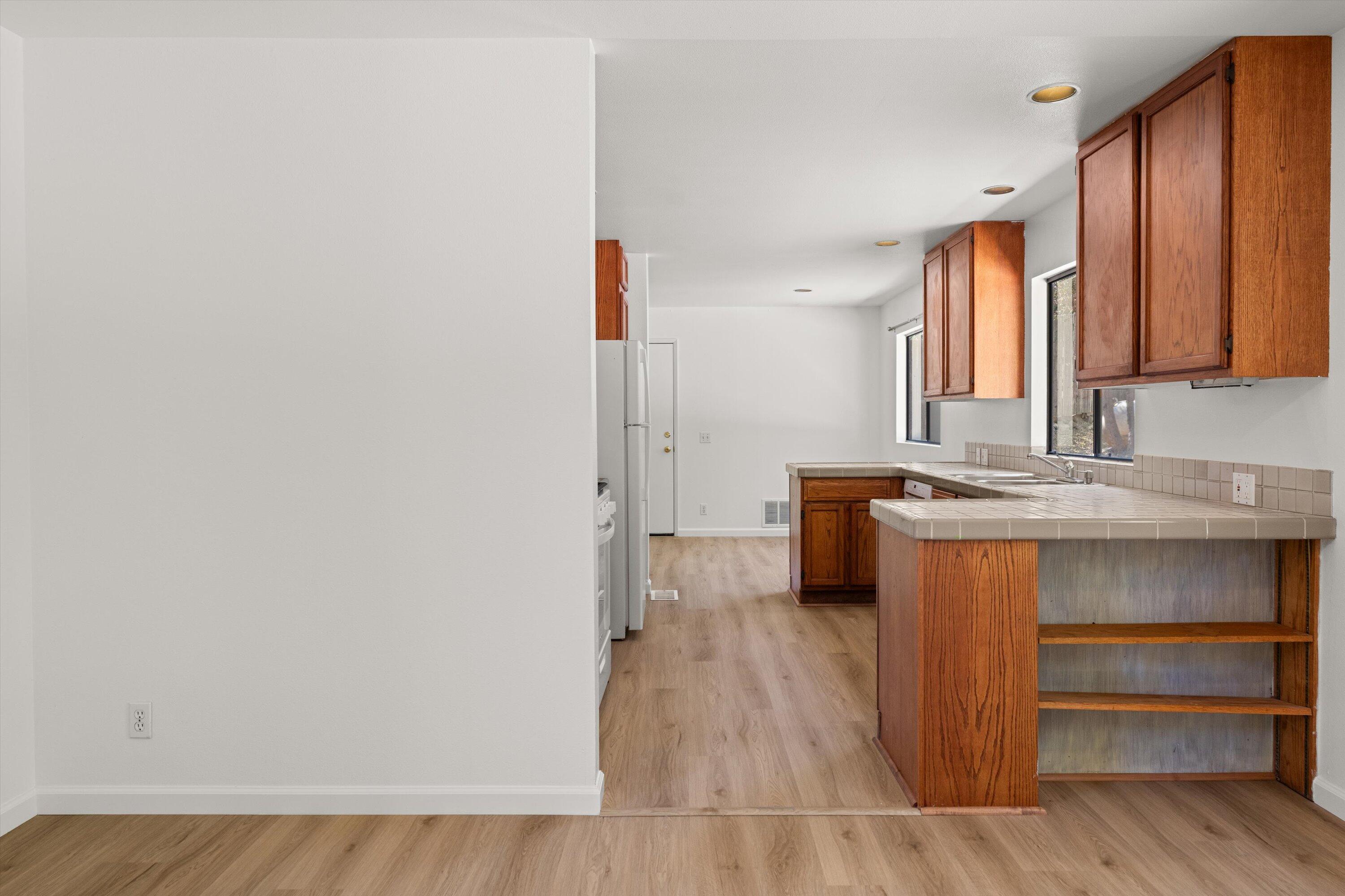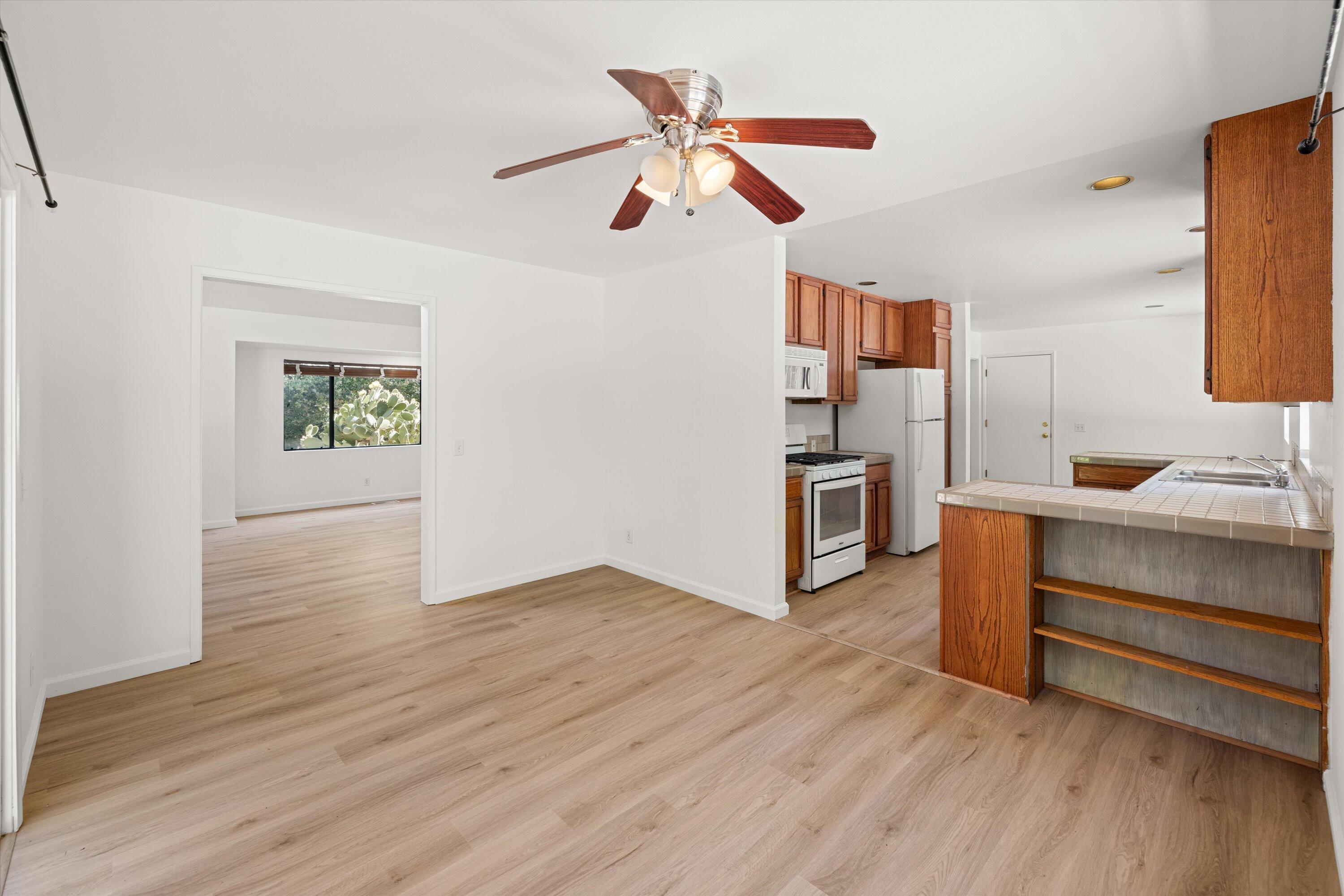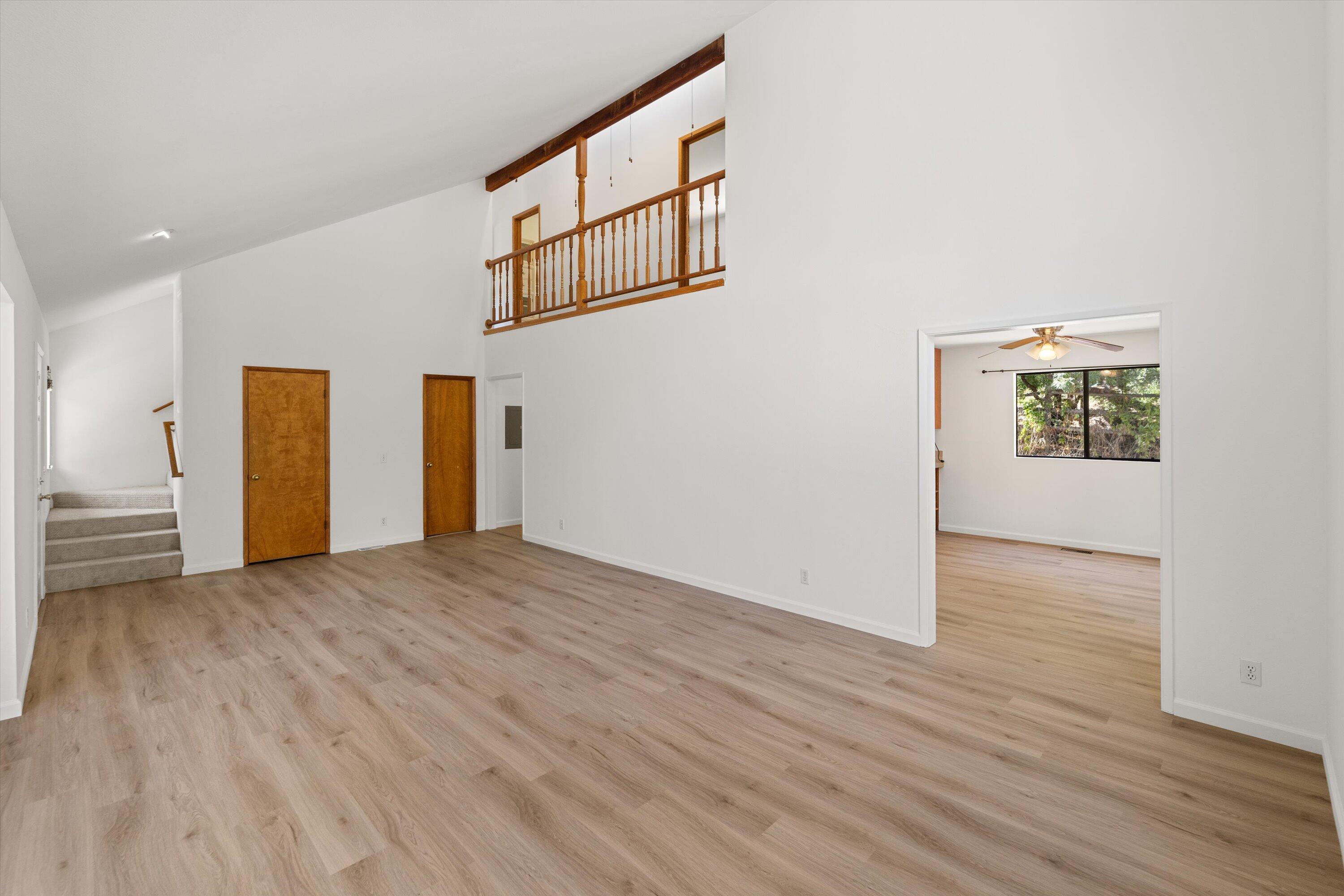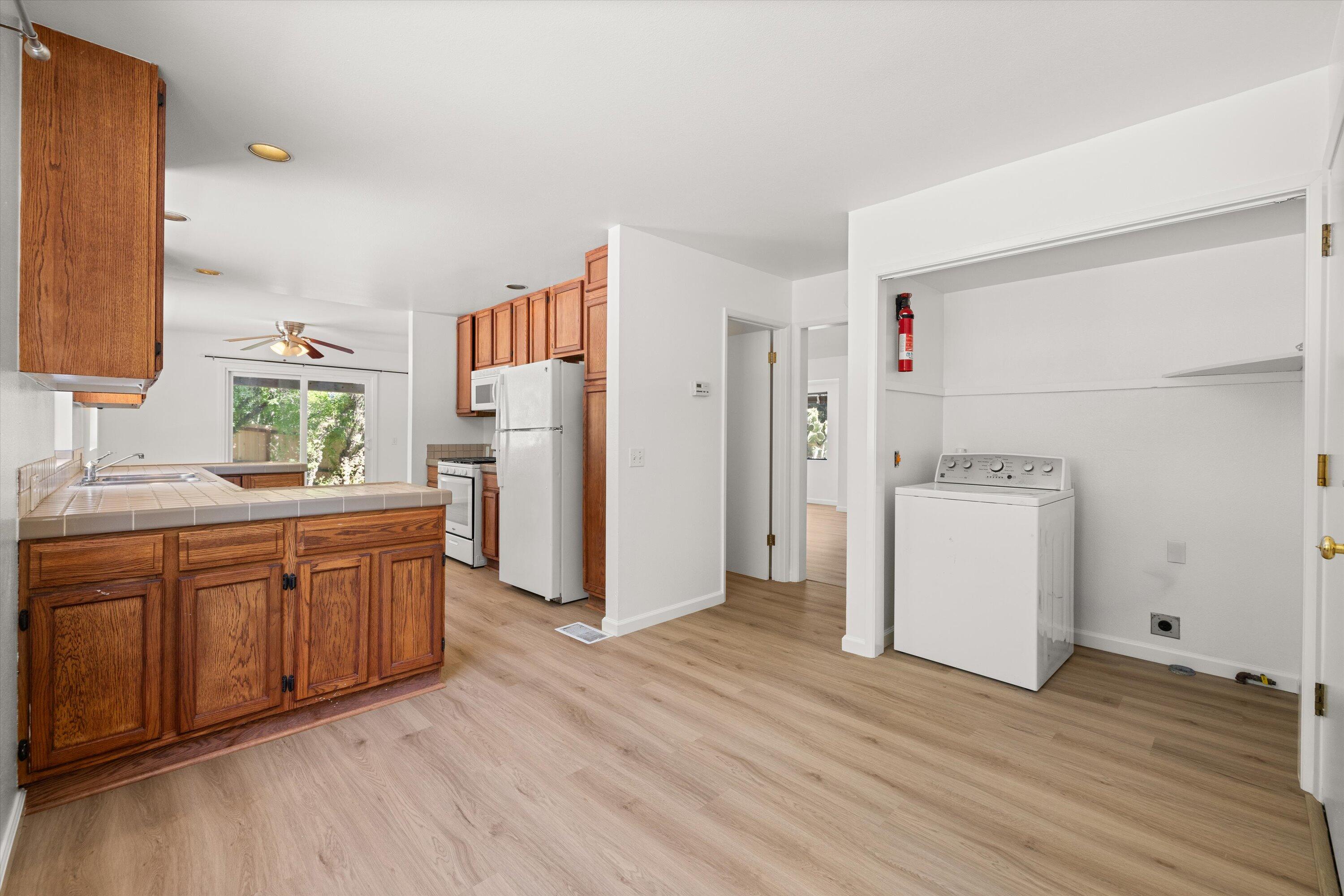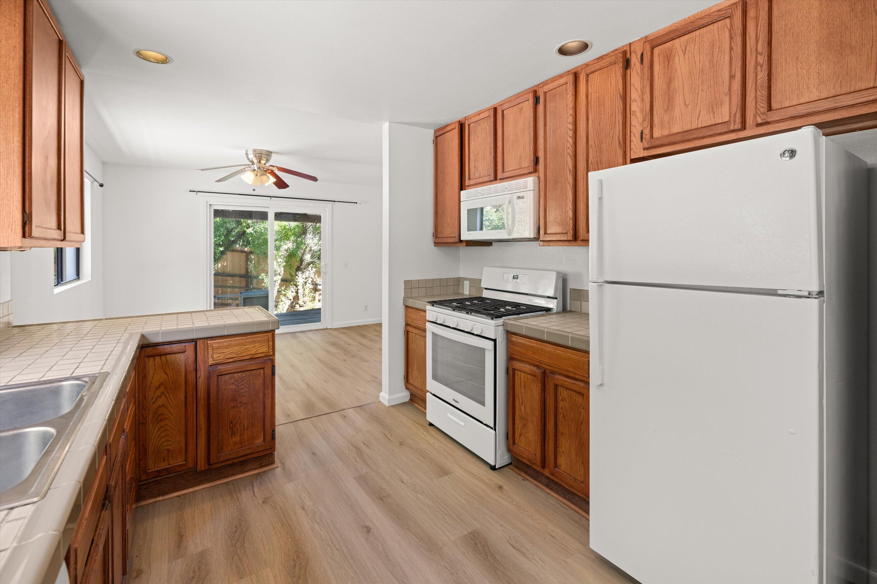 Welcome to 4856 Glenn Road - a gem in the peaceful Painted Cave community offering a light and inviting spacious floorplan on an oak-tree studded lot with plenty of beautiful natural scenery. Featuring 3 bedrooms and 2.5 bathrooms at 1,683 square feet this home boasts plenty of space and invites the nature views in. Upon entering the home you are greeted with tall vaulted ceilings and windows showcasing beautiful natural light and green views. The generous dining room with sliders to a side deck space plus bonus eat-in kitchen flank the open kitchen space, giving this home versatile entertaining and lifestyle options. All new luxury vinyl flooring, a large pantry with shelving in the hallway as well as laundry area, powder room and 1 car garage complete the entry level of the home. On the upper level of this cheerful home you will find brand new carpeting and an open hallway which adds to the open and bright flow. The primary suite offers a full bathroom and oversized walk-in closet. Another full bathroom is located between the primary bedroom and middle bedroom and a third bedroom on the end offers high vaulted ceilings with extra windows and a loft feel.
