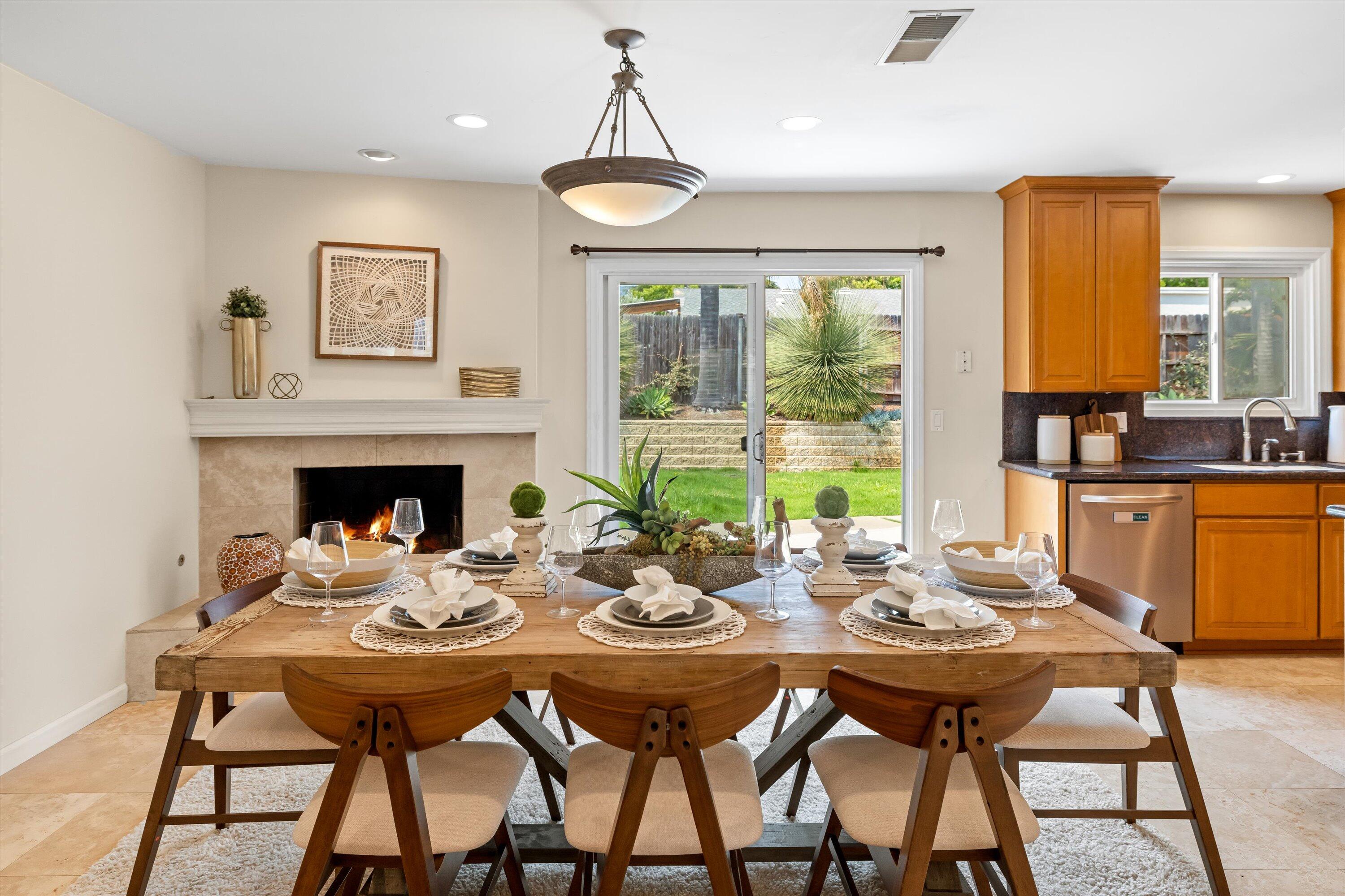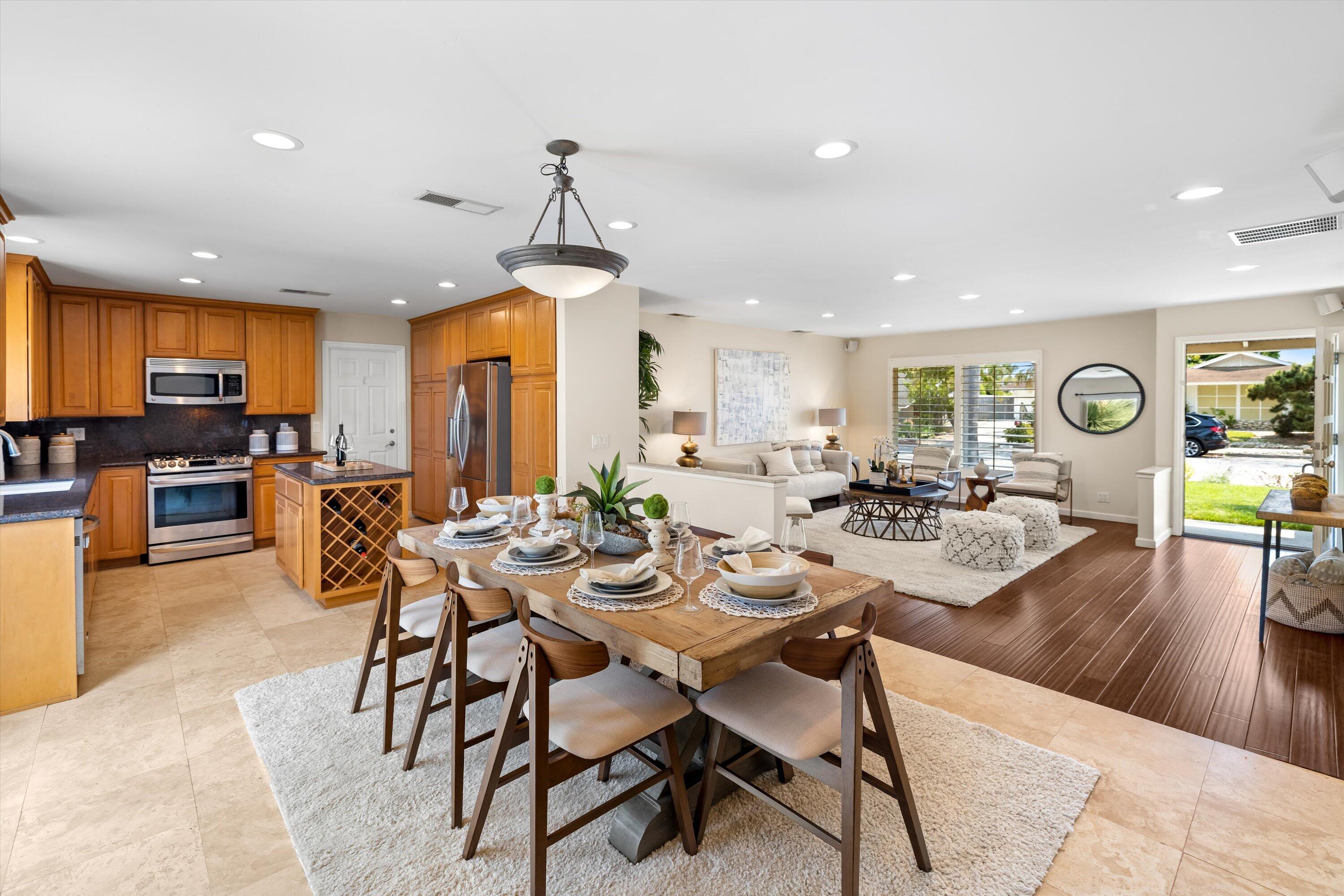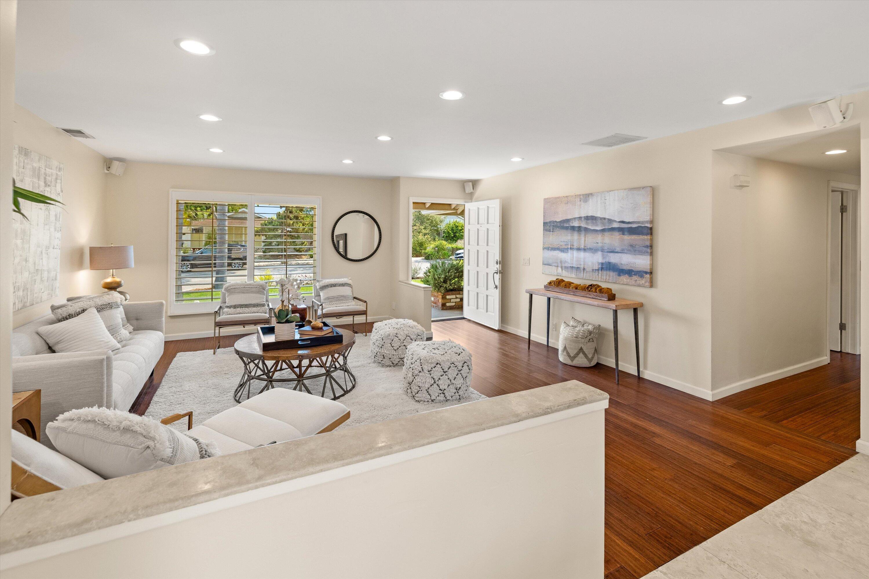 Palms frame an oasis on a tree-lined street at 6220 Covington. This single story, 3BR, 2BA + Bonus Room home is an updated ranch in the delightful Lake Los Carneros neighborhood.