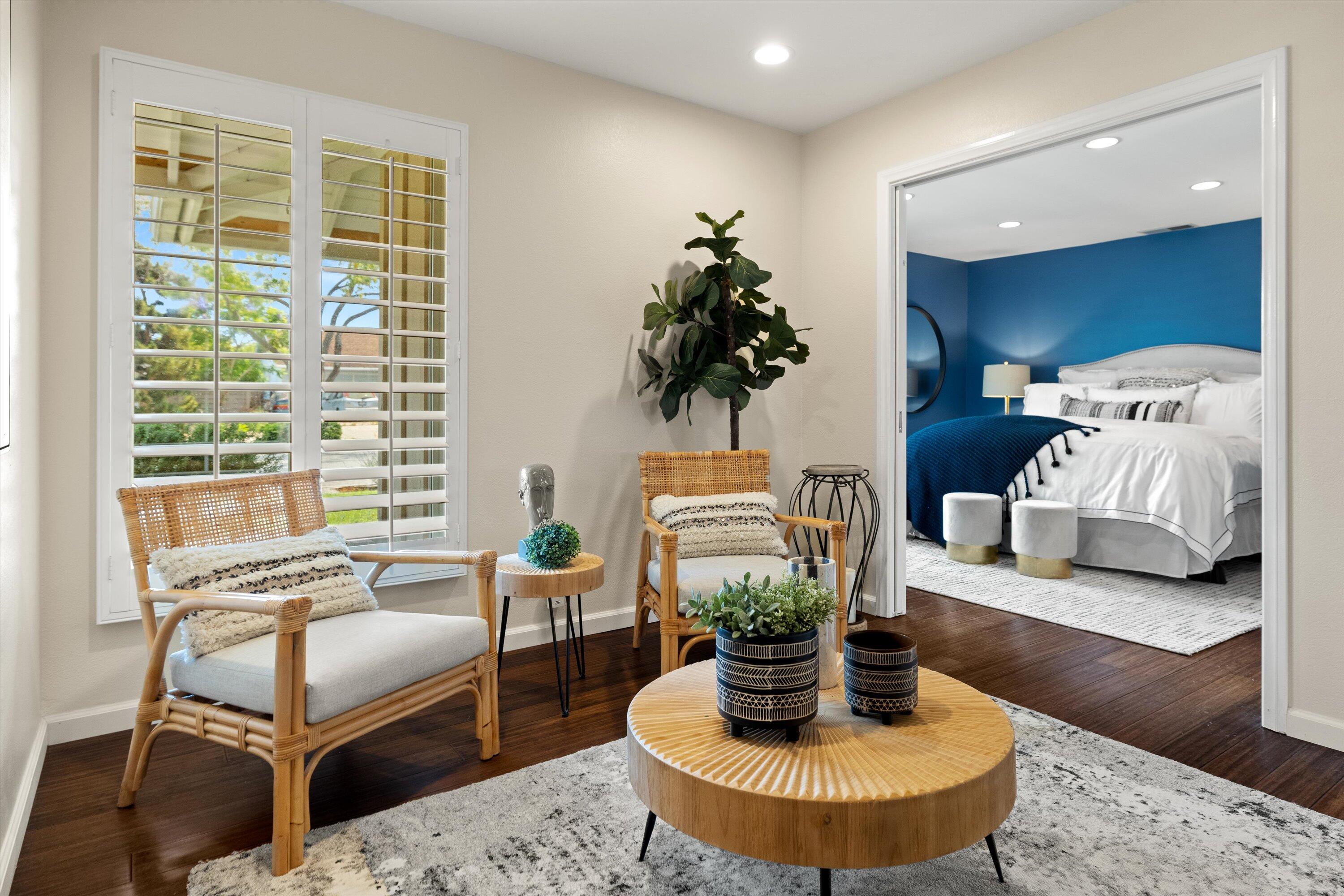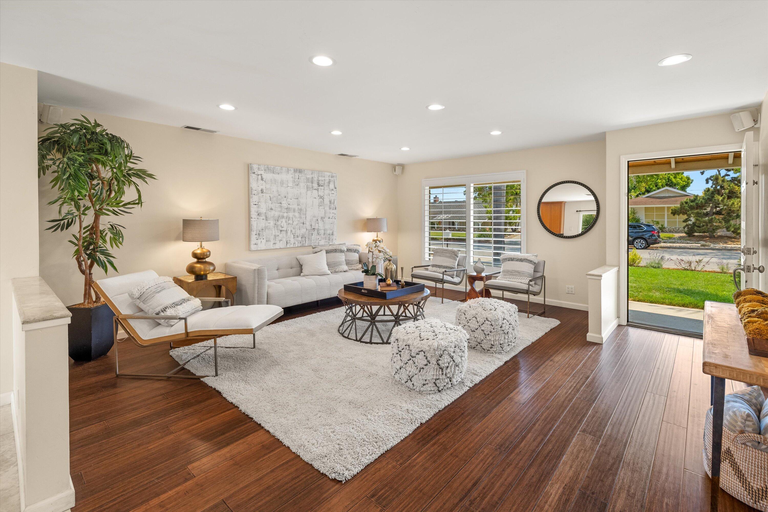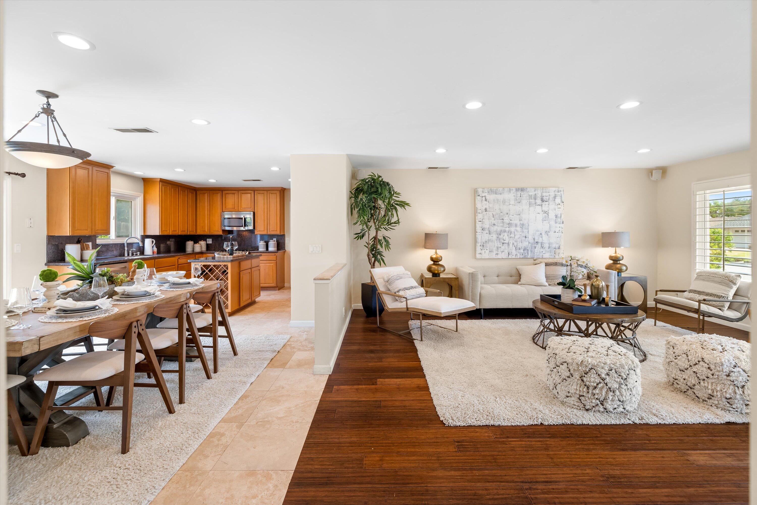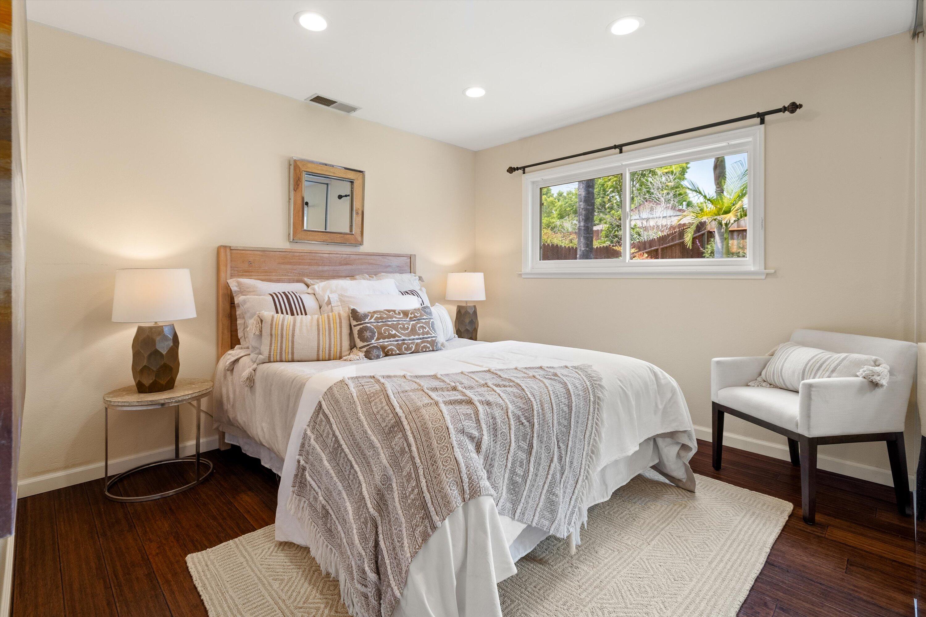 Palms frame an oasis on a tree-lined street at 6220 Covington. This single story, 3BR, 2BA + Bonus Room home is an updated ranch in the delightful Lake Los Carneros neighborhood.