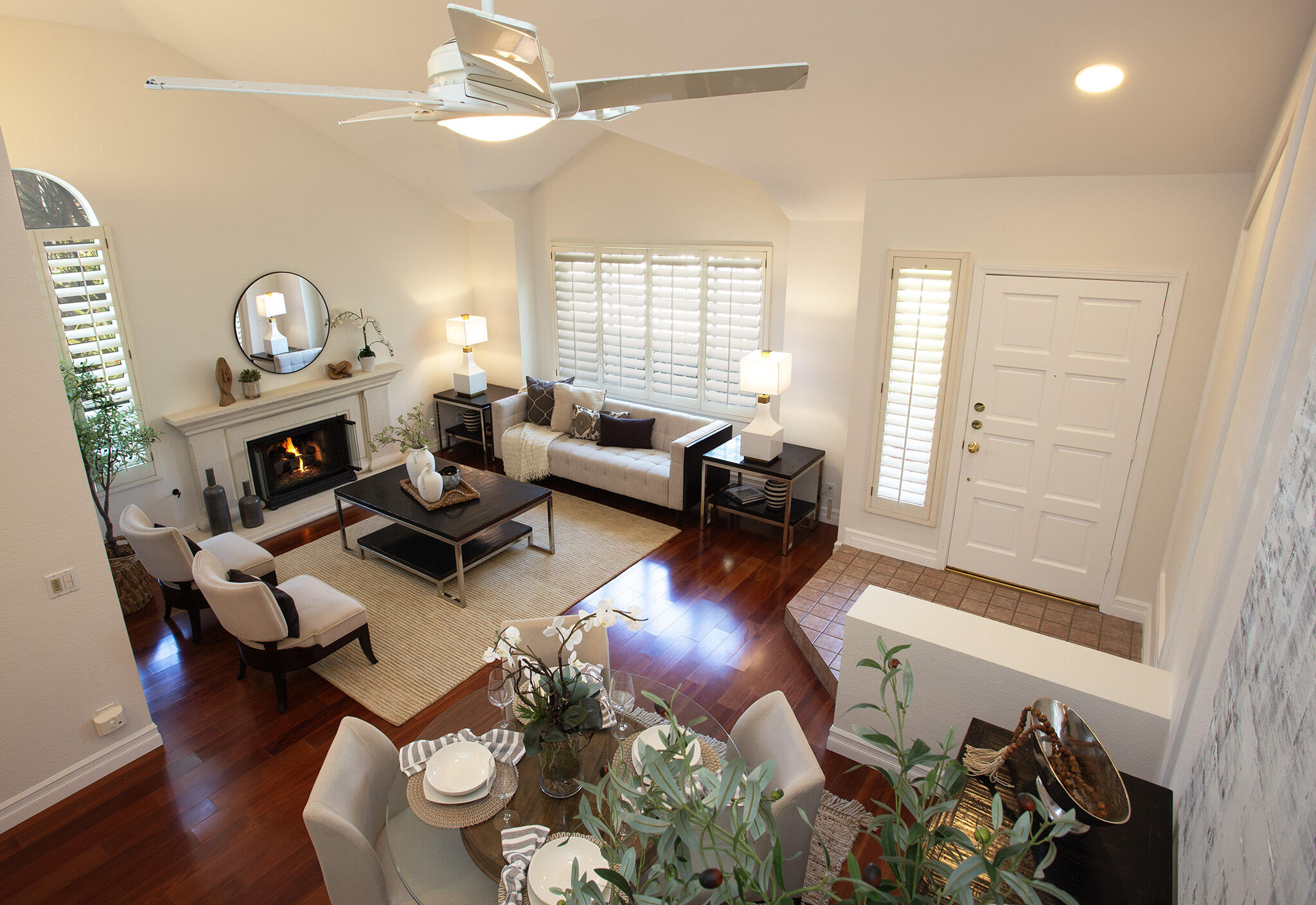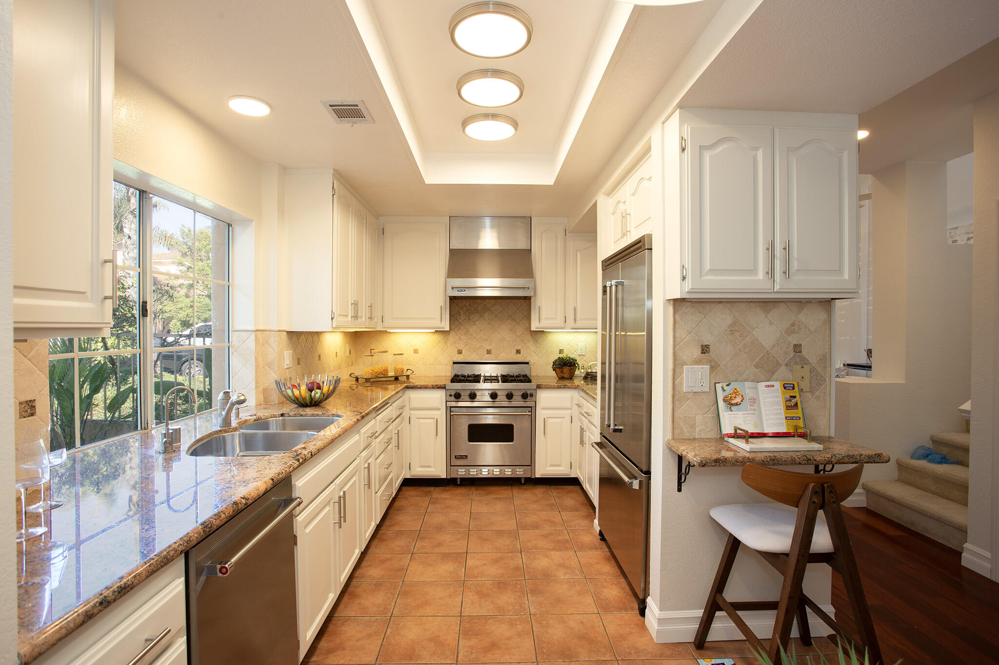With this home, you get a little bit more. The spacious open floor plan, with soaring ceilings fully embodies the coastal indoor/outdoor California lifestyle. Originally the model home for the entire complex, double doors open on to an extra large patio and side yard. Easy access to the newly remodeled community pool for an evening swim and sauna. A flexible layout with potential for a third bedroom on the lower level makes room for many options. Upstairs are two luxurious bedrooms, both with en-suite bathrooms and one with an outdoor balcony.
